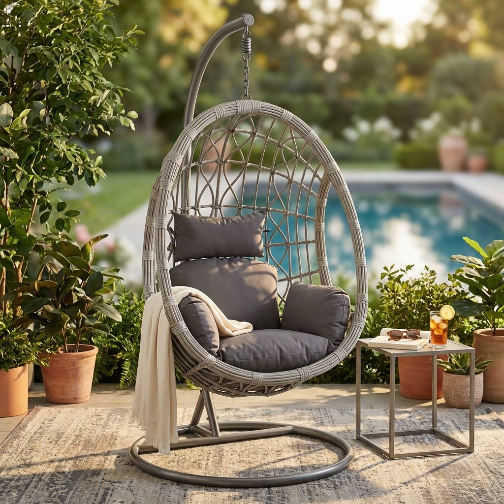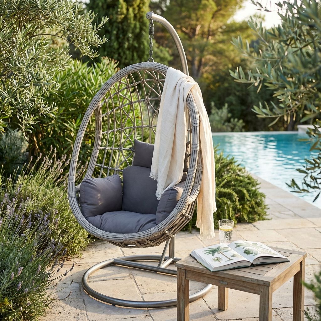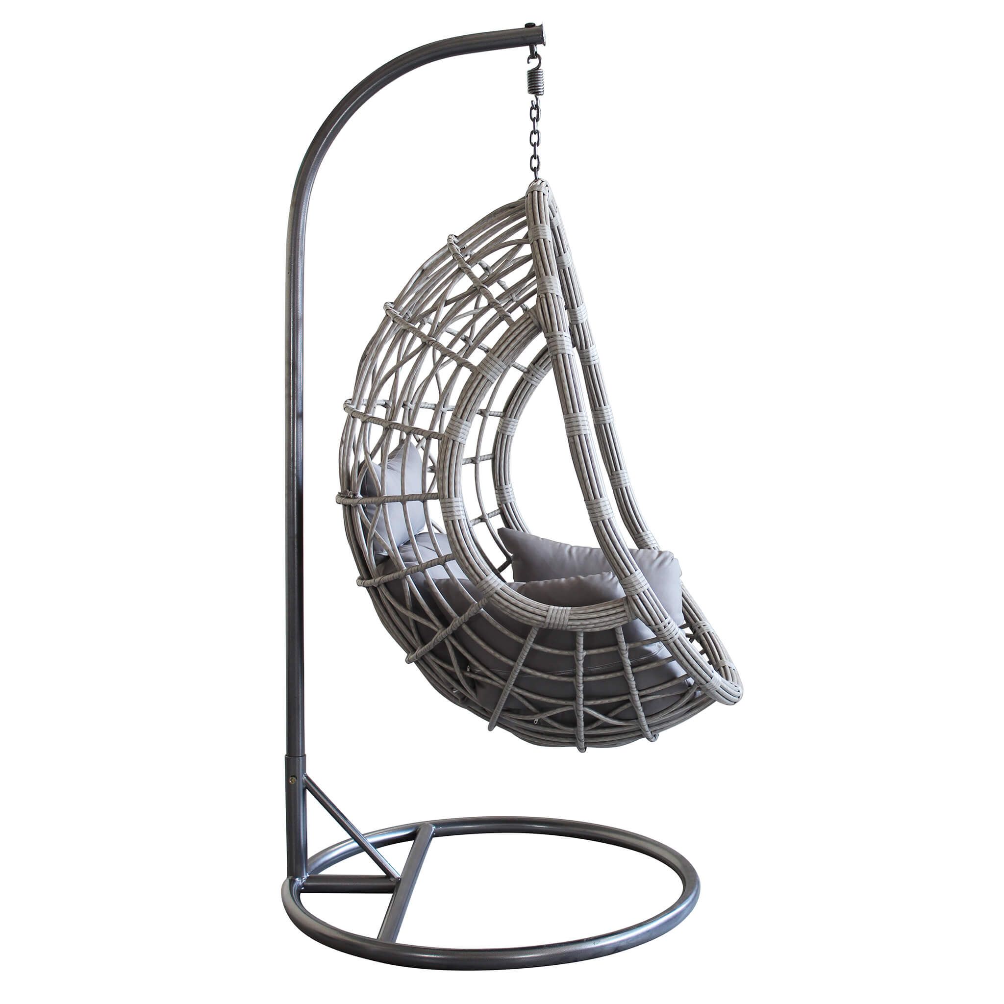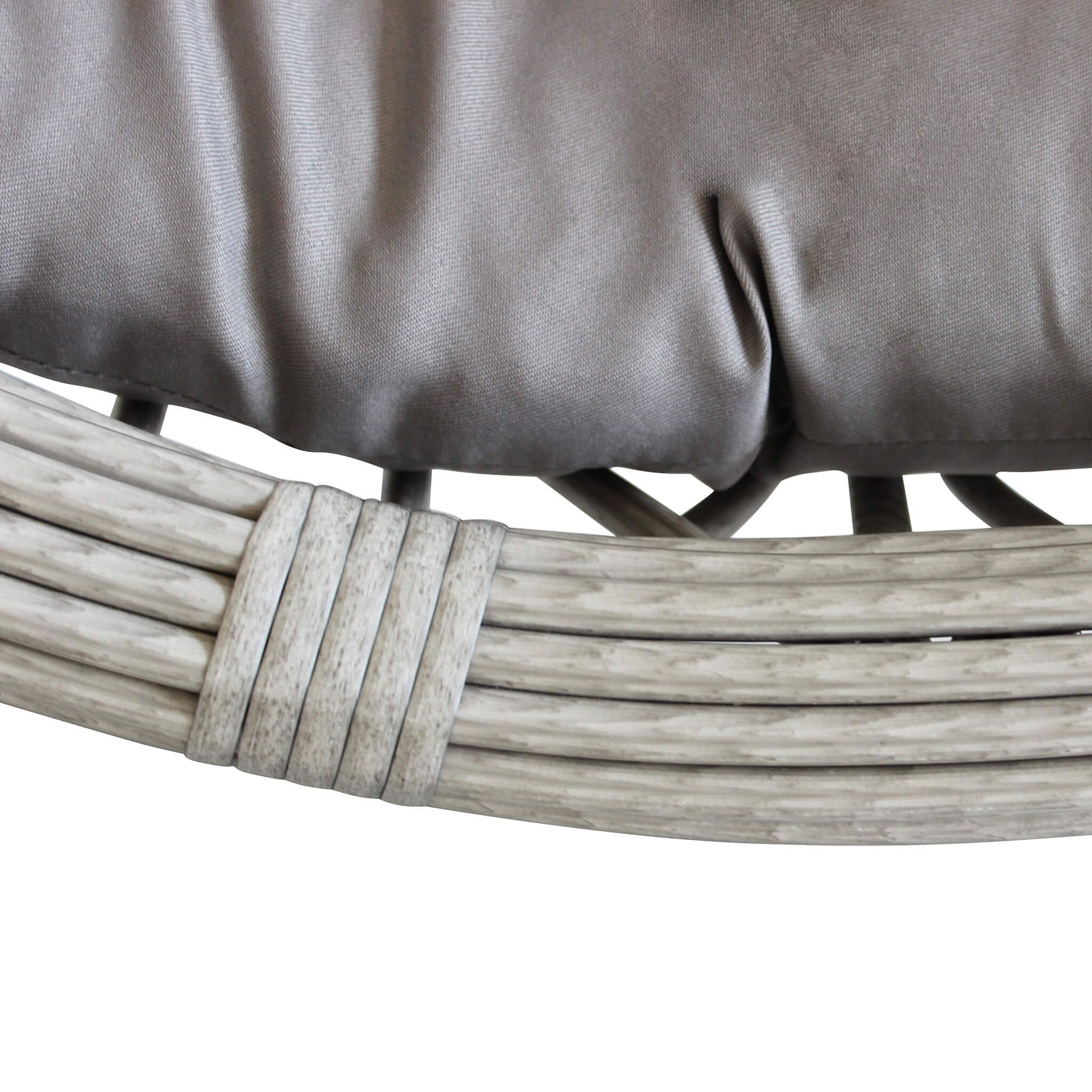 La sedia sospesa JANE è disponibile in colore grigio e marrone e bianco