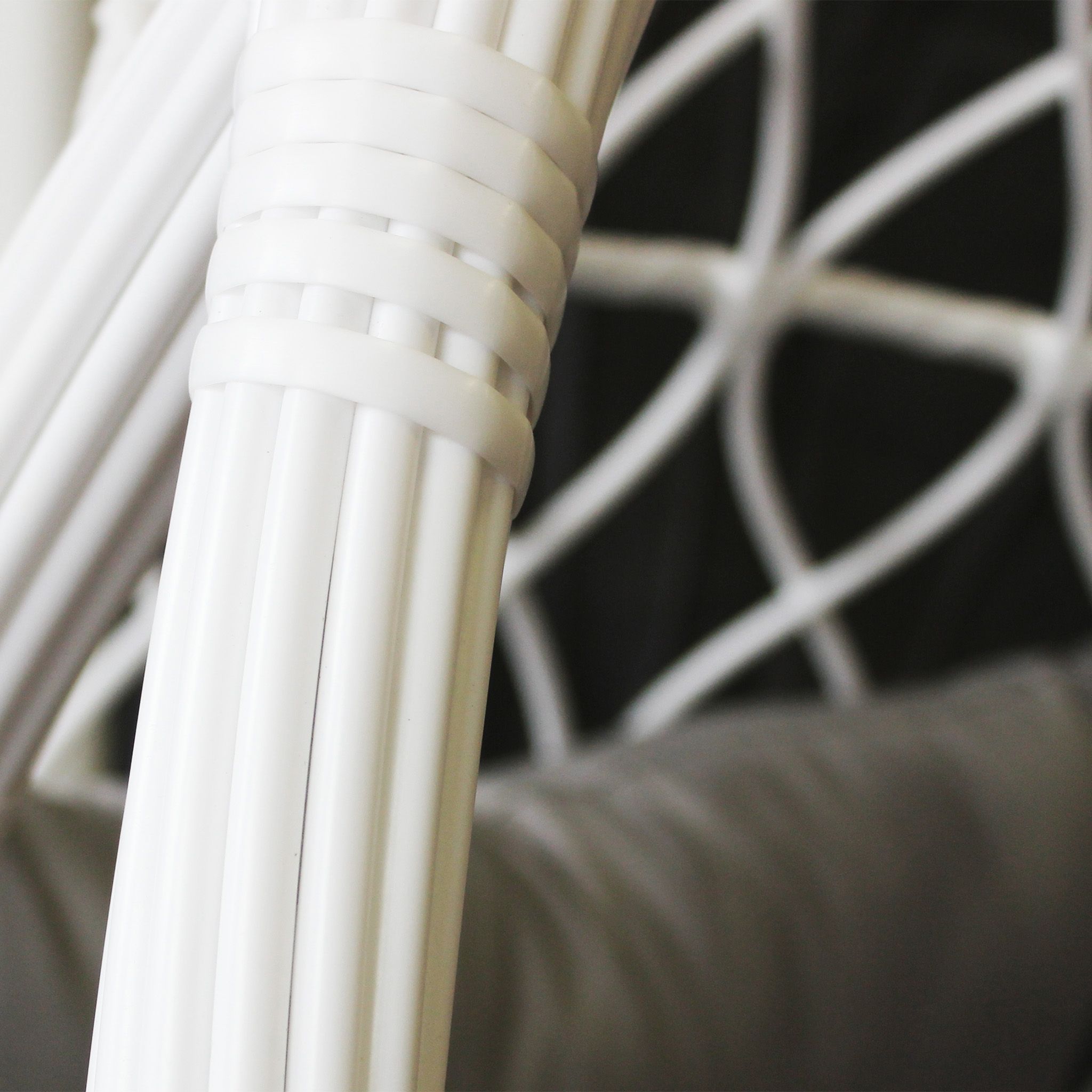 La sedia sospesa JANE è disponibile in colore grigio e marrone e bianco
