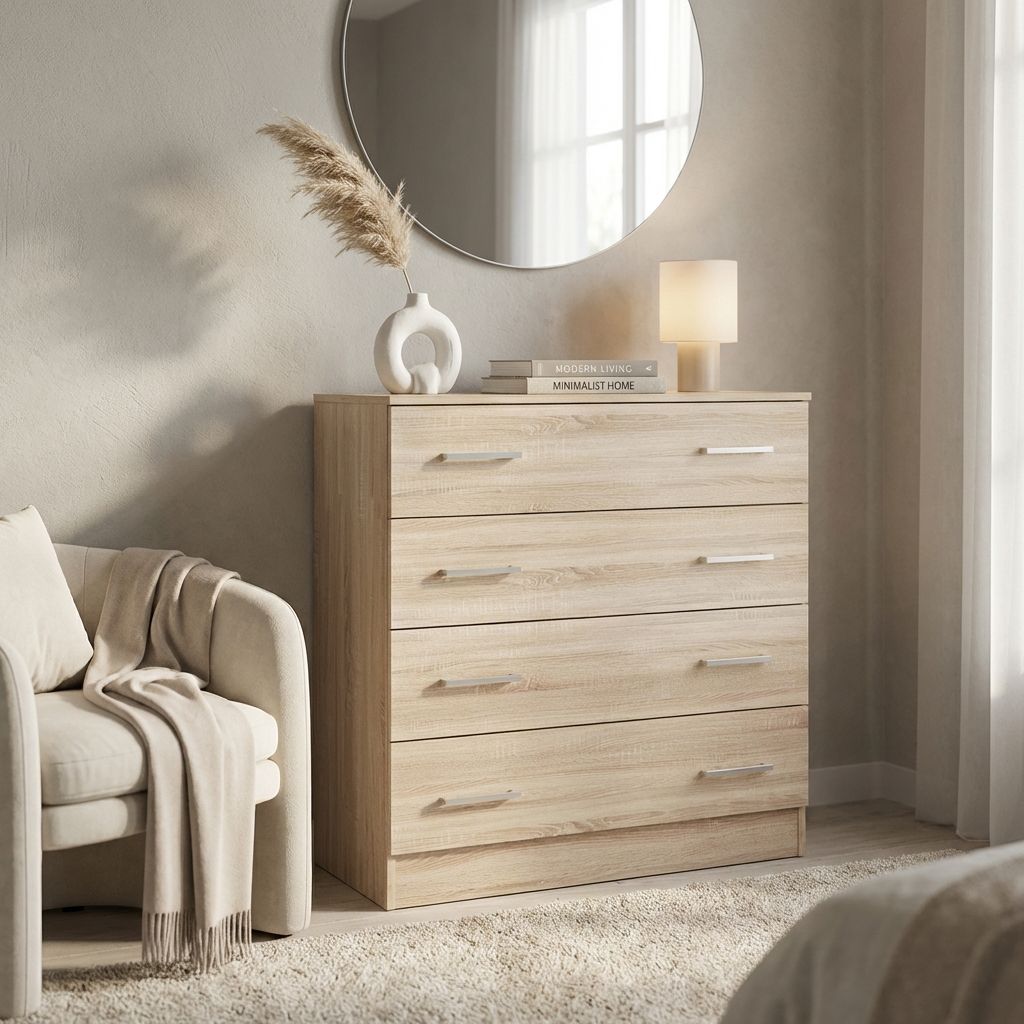 La cassettiera JARL è disponibile in colore bianco, quercia