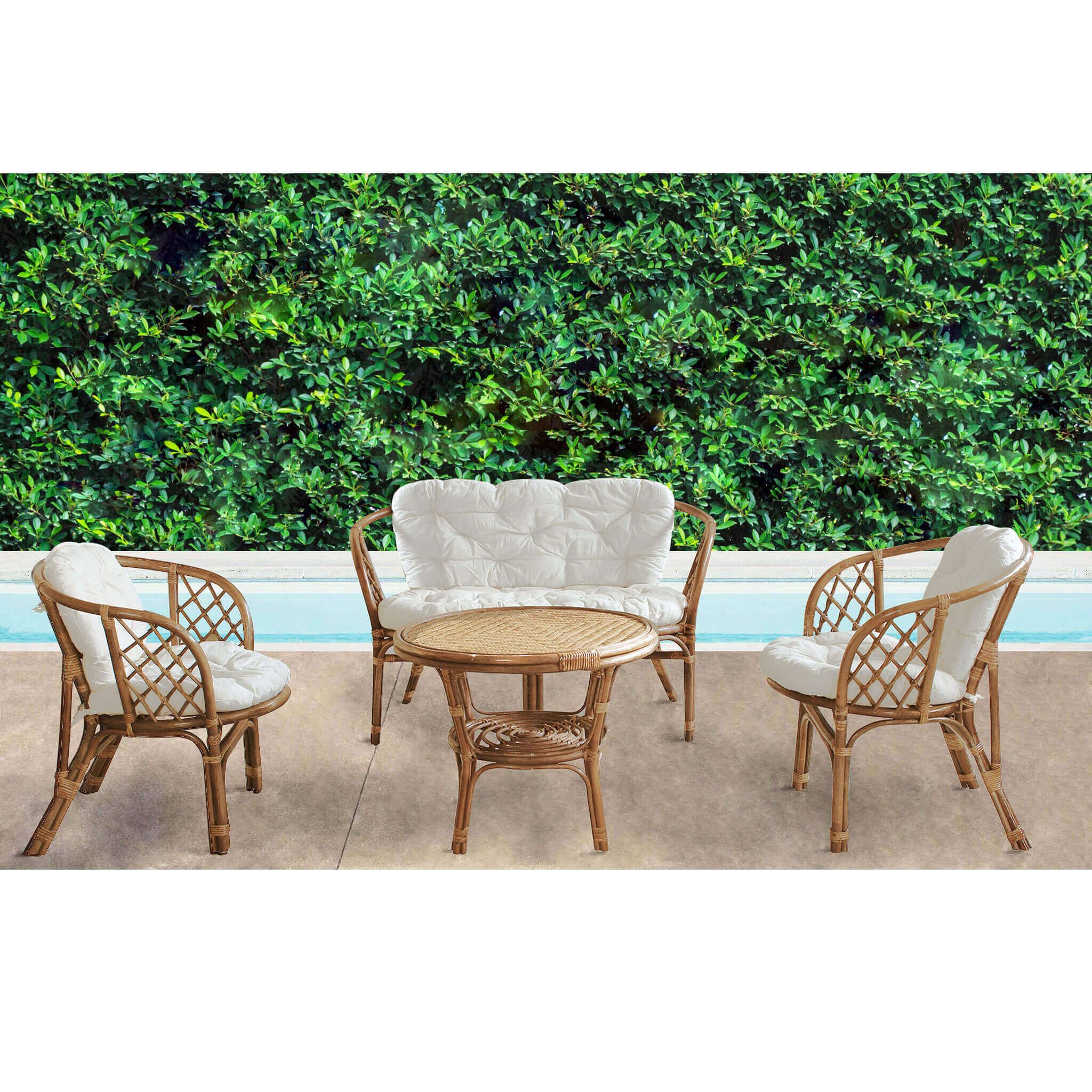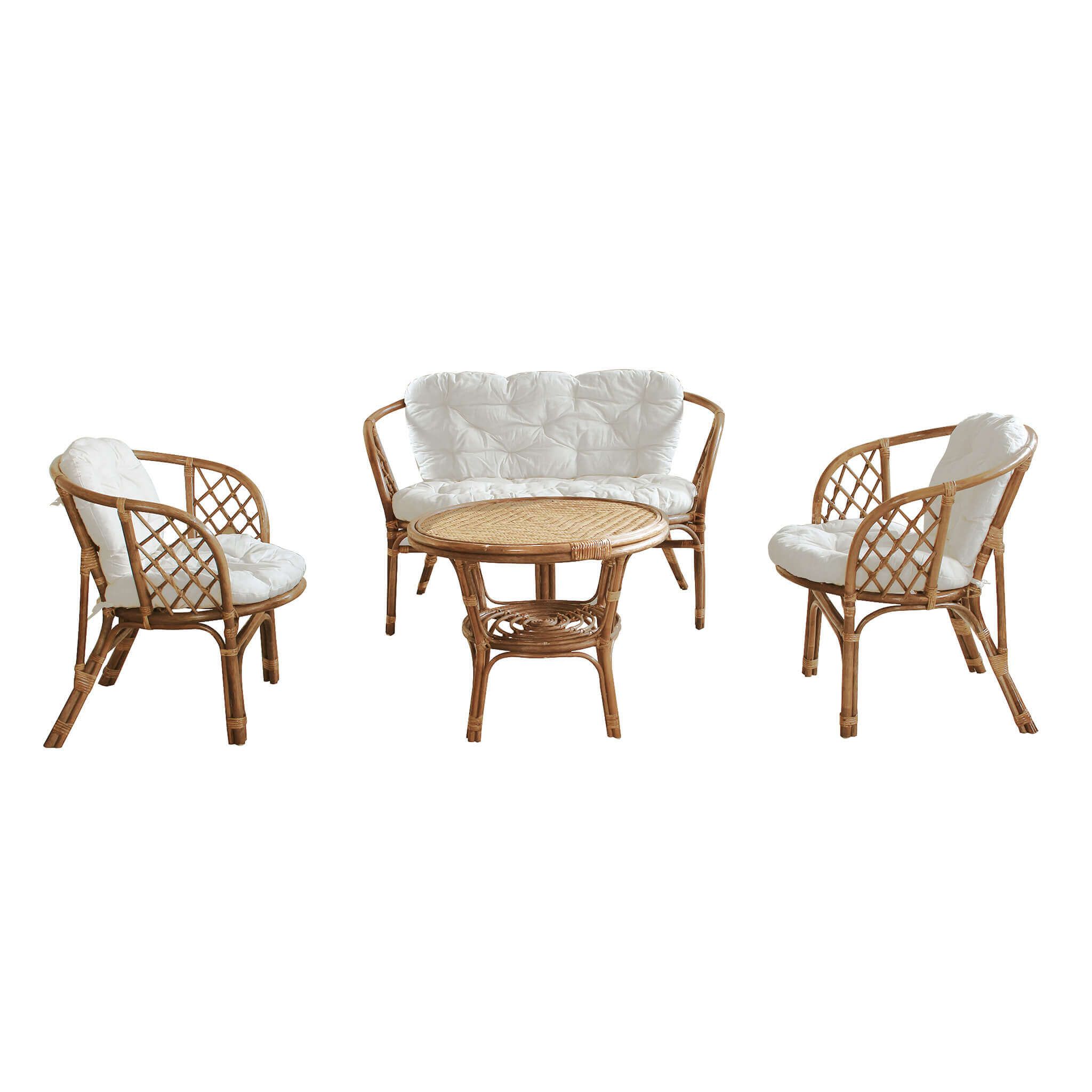 JERA è il nostro salotto in fibra naturale con comodi cuscini imbottiti ordinabile in 2 varianti colori miele o marrone
