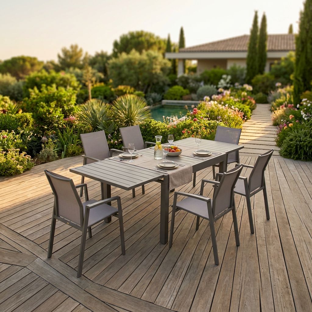 Il set da giardino JERRI è disponibile in colore antracite, bianco, taupe e tortora, puoi scegliere se acquistarlo con 4, 6, o 8 sedute, esiste in dimensione da 90x90 cm allungabile fino 180 cm e in dimensione 135x90 cm allungabile fino a 270 cm
