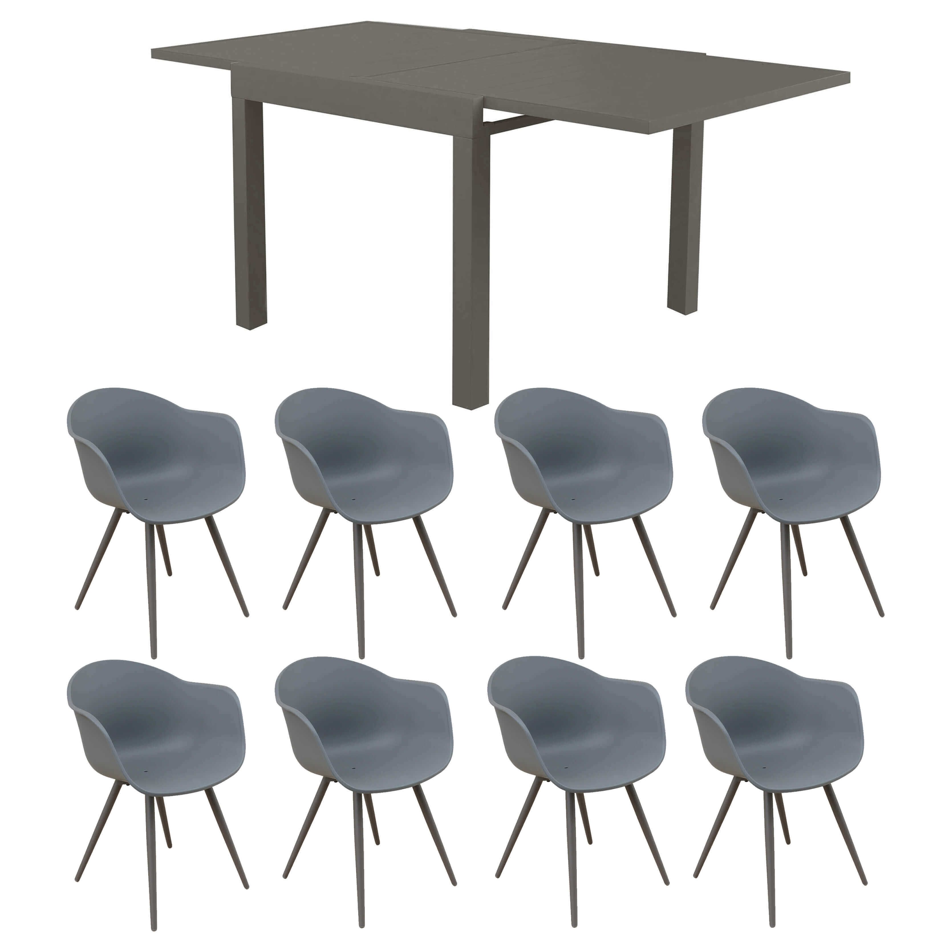 Il set da giardino JERRI è disponibile in colore antracite, bianco, taupe e tortora, puoi scegliere se acquistarlo con 4, 6, o 8 sedute, esiste in dimensione da 90x90 cm allungabile fino 180 cm e in dimensione 135x90 cm allungabile fino a 270 cm