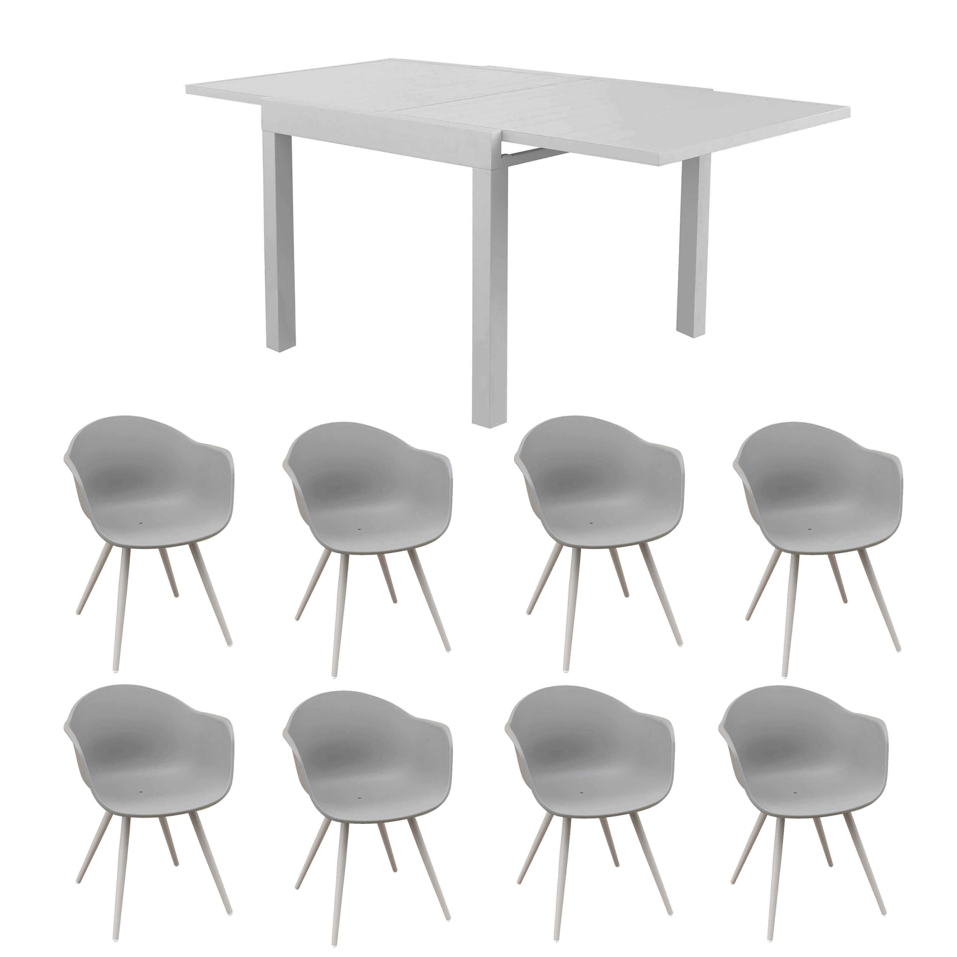 Il set da giardino JERRI è disponibile in colore antracite, bianco, taupe e tortora, puoi scegliere se acquistarlo con 4, 6, o 8 sedute, esiste in dimensione da 90x90 cm allungabile fino 180 cm e in dimensione 135x90 cm allungabile fino a 270 cm