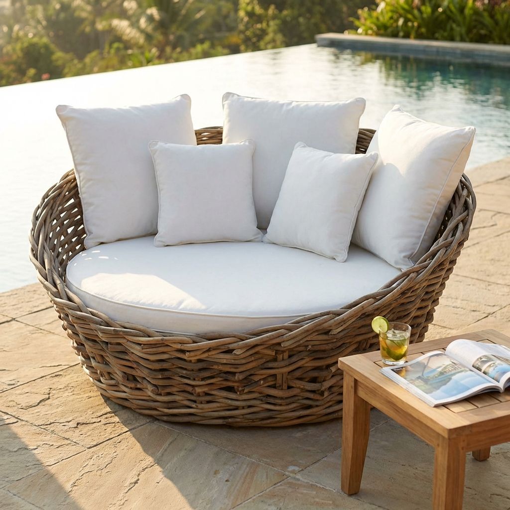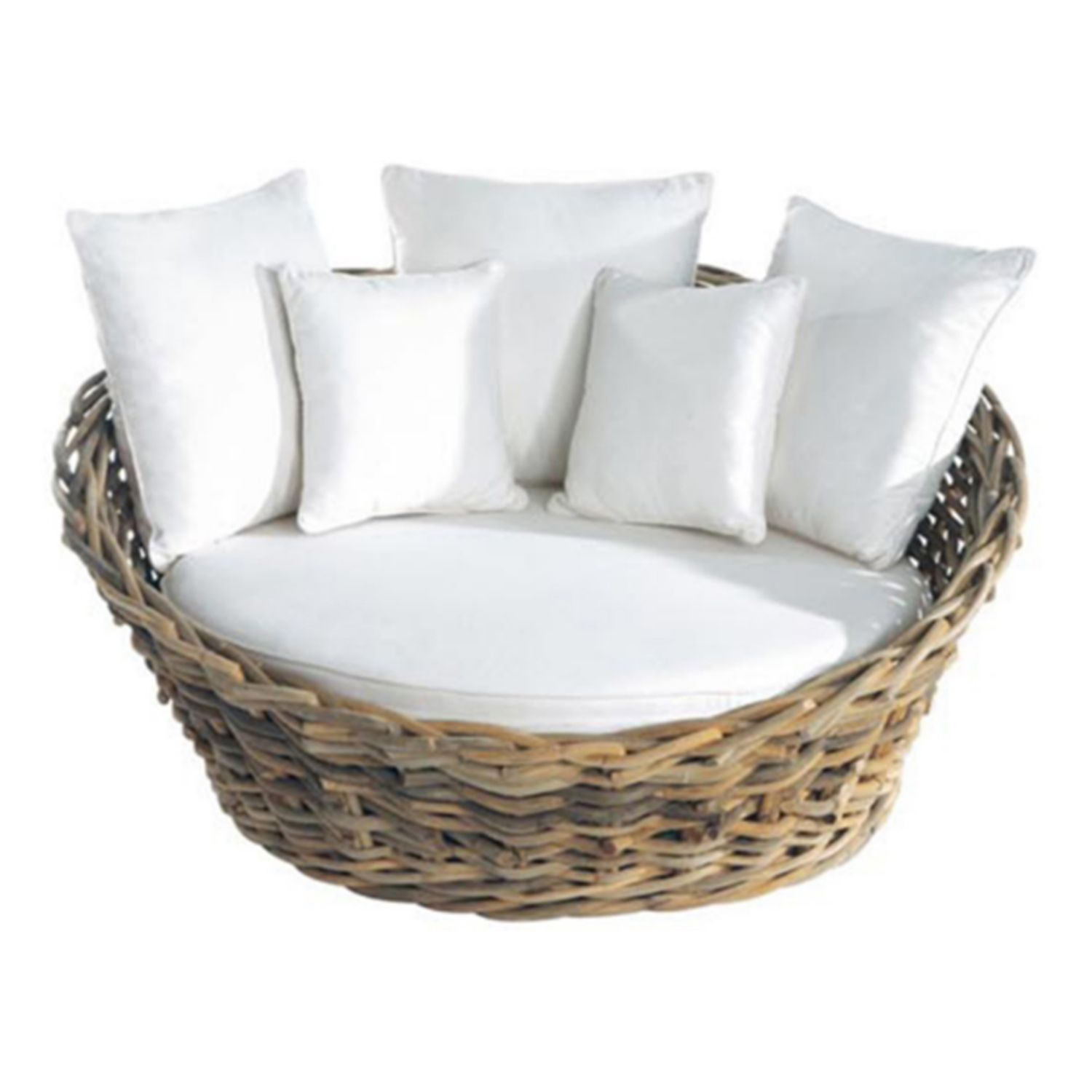Conchiglione in rattan dalla forma ampia e avvolgente, ideale per creare un angolo relax elegante e naturale. La struttura intrecciata valorizza l’artigianalità del materiale, mentre la seduta profonda con cuscini offre comfort e morbidezza. Perfetto per living, veranda o spazi coperti in stile boho o mediterraneo.