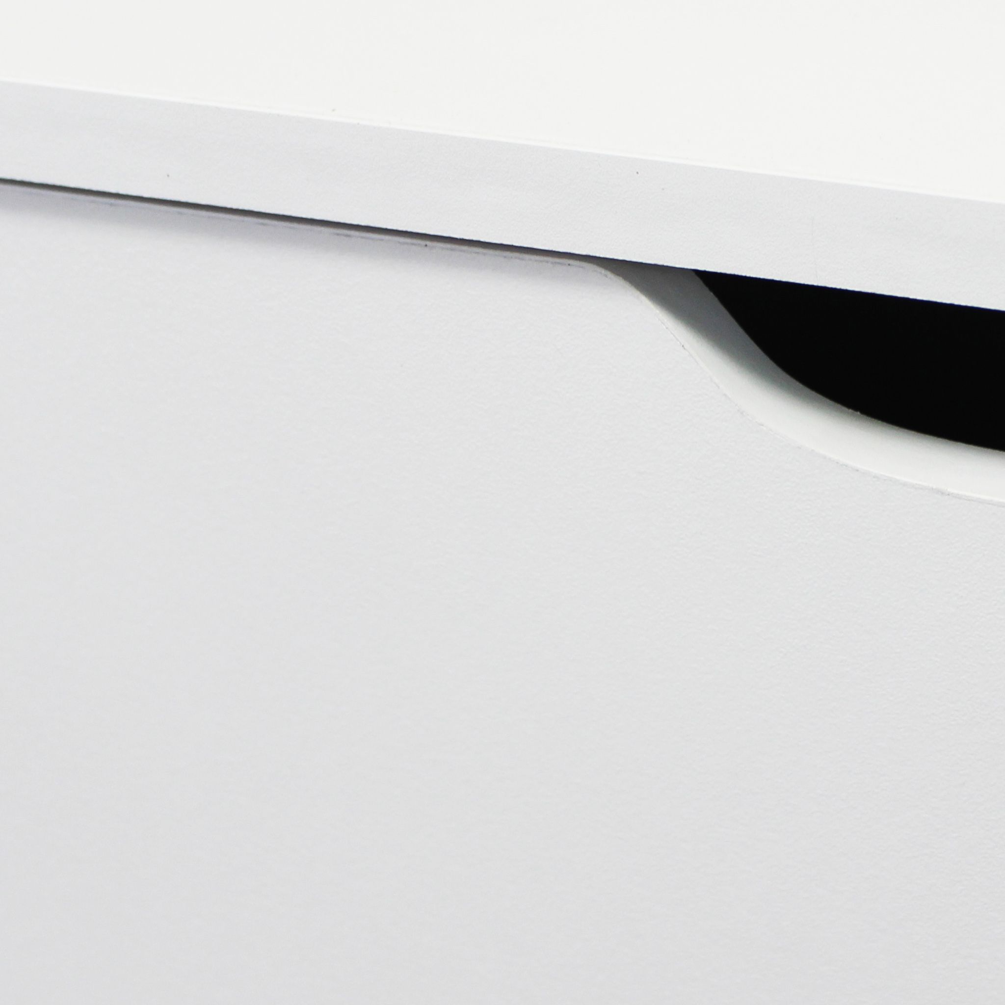 Comodino bianco in pannello truciolare con due cassetti e gambe in legno naturale. Luminosa finitura minimal, solida e funzionale, perfetta per camera da letto, soggiorno o ingresso.