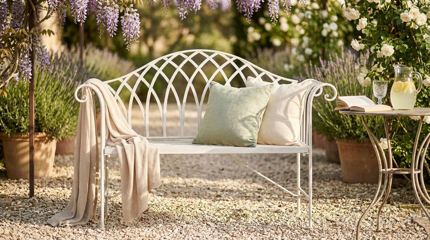 Nel caldo estate, il miglior posto per rilassarsi è sicuramente il tuo giardino. E che modo migliore per farlo se non sulla nostra panchina in ferro verniciato chiamata Josette? Con il suo stile provenzale e le linee affusolate, Josette trasmette l'amore messo nella sua realizzazione. Non solo è elegante, ma è anche stabile e robusta. Sarà sicuramente il punto focale del tuo angolo verde dei sogni.