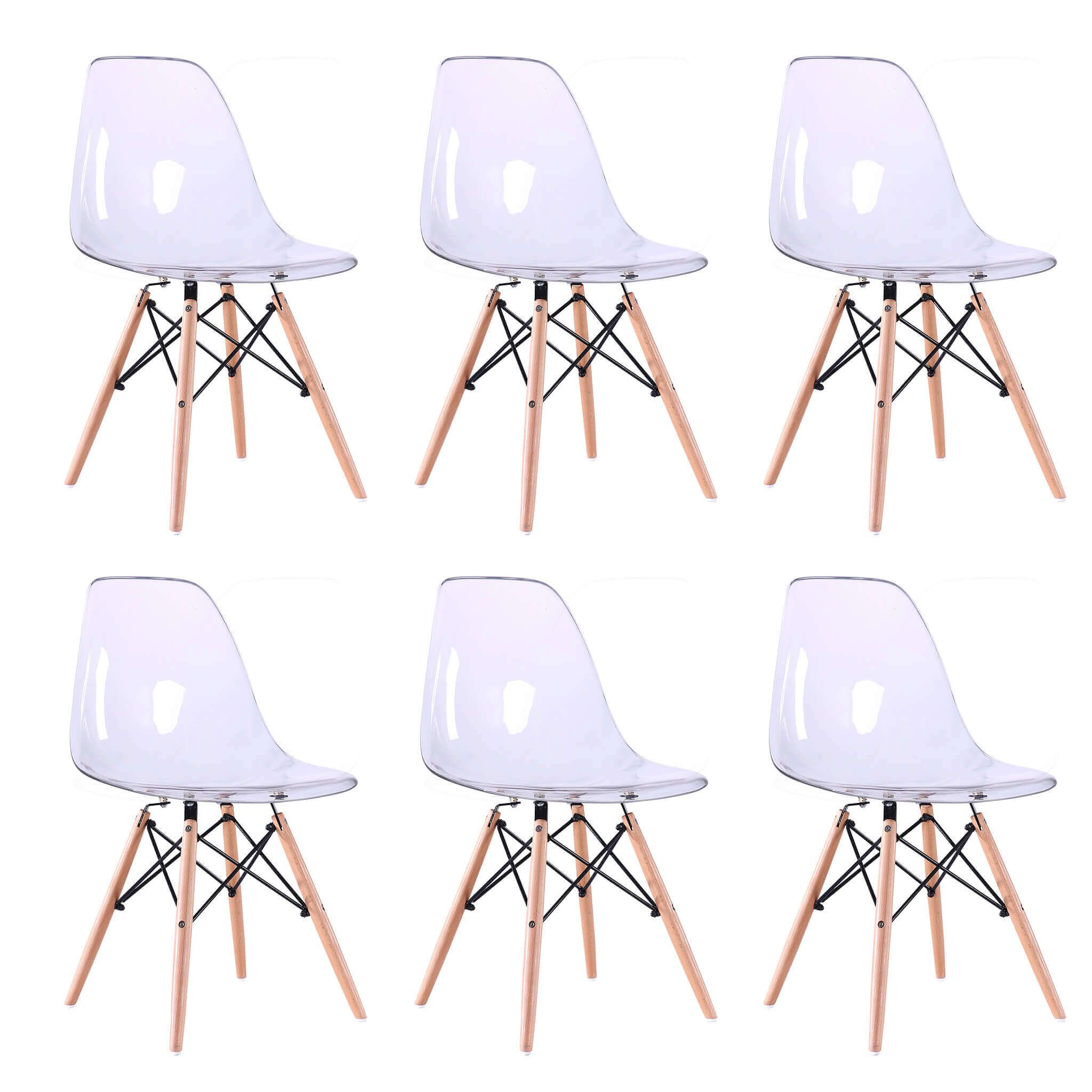 Regala comfort ed eleganza al tuo tavolo con la sedia Juliette. Gradevole e graziosa, questa sedia troverà il suo posto in sala da pranzo. Questa poltrona dal design contemporaneo e moderno, rimanda alle tendenze dei mobili nordici grazie alle gambe in legno di faggio naturale. La sua seduta avvolgente in pvc trasparente invita ad un momento di convivialità, mentre il suo telaio portante in metallo dona resistenza e un tocco di design moderno.