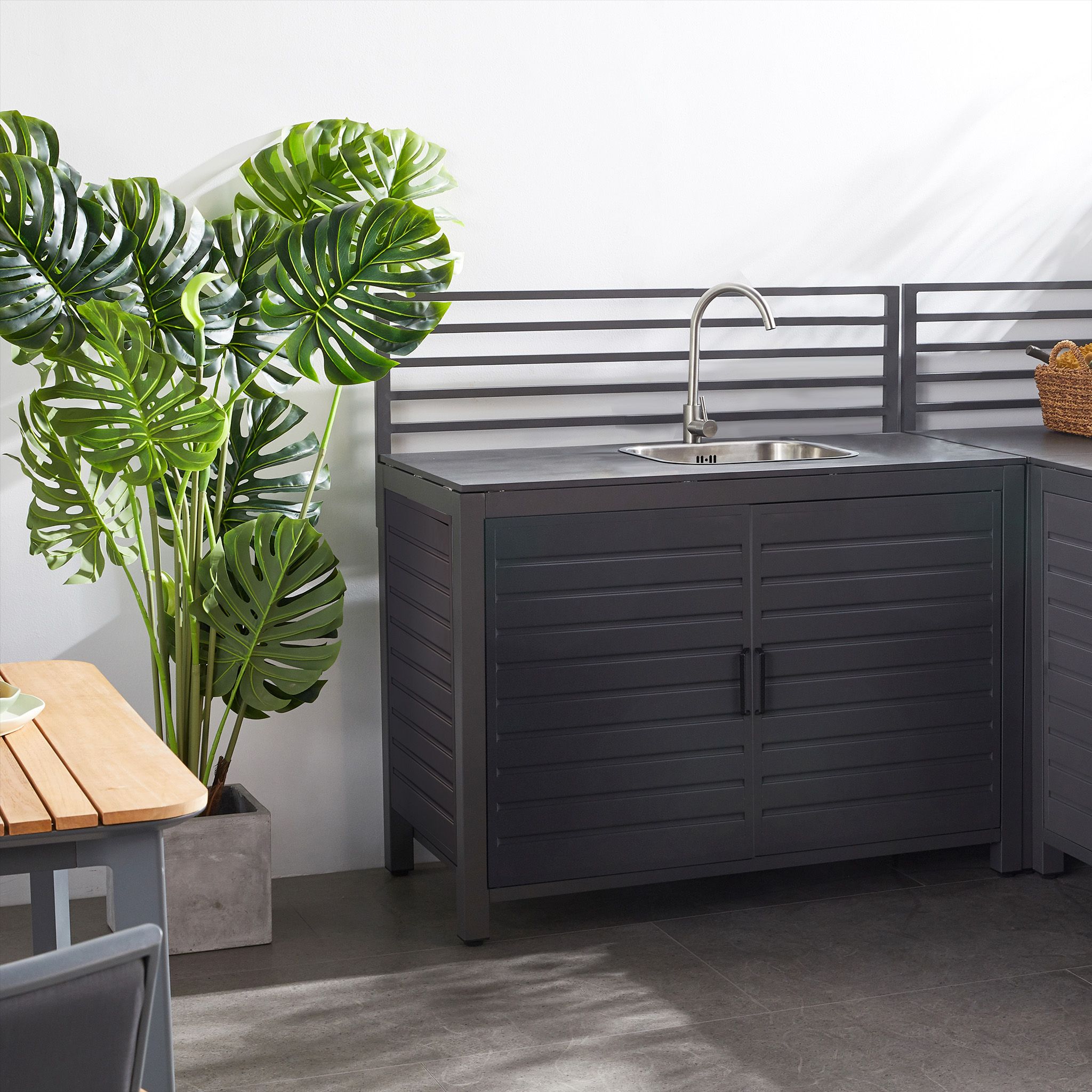 Il modulo in alluminio con lavello per cucina esterna unisce design moderno e praticità, trasformando il vostro spazio all'aperto in una vera cucina funzionale. Dotato di lavello e spazio di stoccaggio, è ideale per ogni cuoco che ama l'arte del barbecue e della cucina al fresco. Questo mobile resistente alle intemperie è un'aggiunta indispensabile per la vostra cucina all'aperto.
