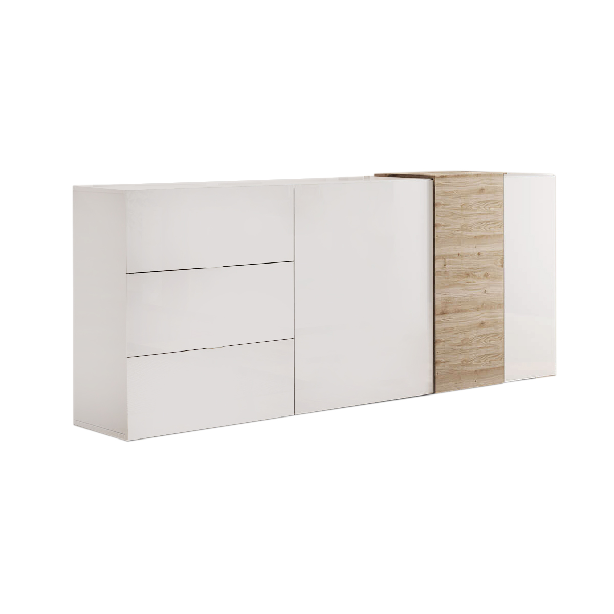 La madia KARMA incarna un design moderno che sposa minimalismo e funzionalità, trasformando qualsiasi spazio con un'estetica pulita e contemporanea. Questo mobile è una tela bianca per la creatività, invitando l'ordine visivo con una disposizione che celebra la collezione personale di oggetti e ricordi.Con una silhouette elegante e proporzionata, KARMA è progettata per integrarsi armoniosamente con l'ambiente circostante, offrendo una base discreta eppure significativa per accentuare la decorazione personale. È l'aggiunta perfetta per chi cerca di fondere lo stile senza tempo con un'accogliente praticità, portando un tocco di serenità e ordine organizzato all'interno della propria dimora.