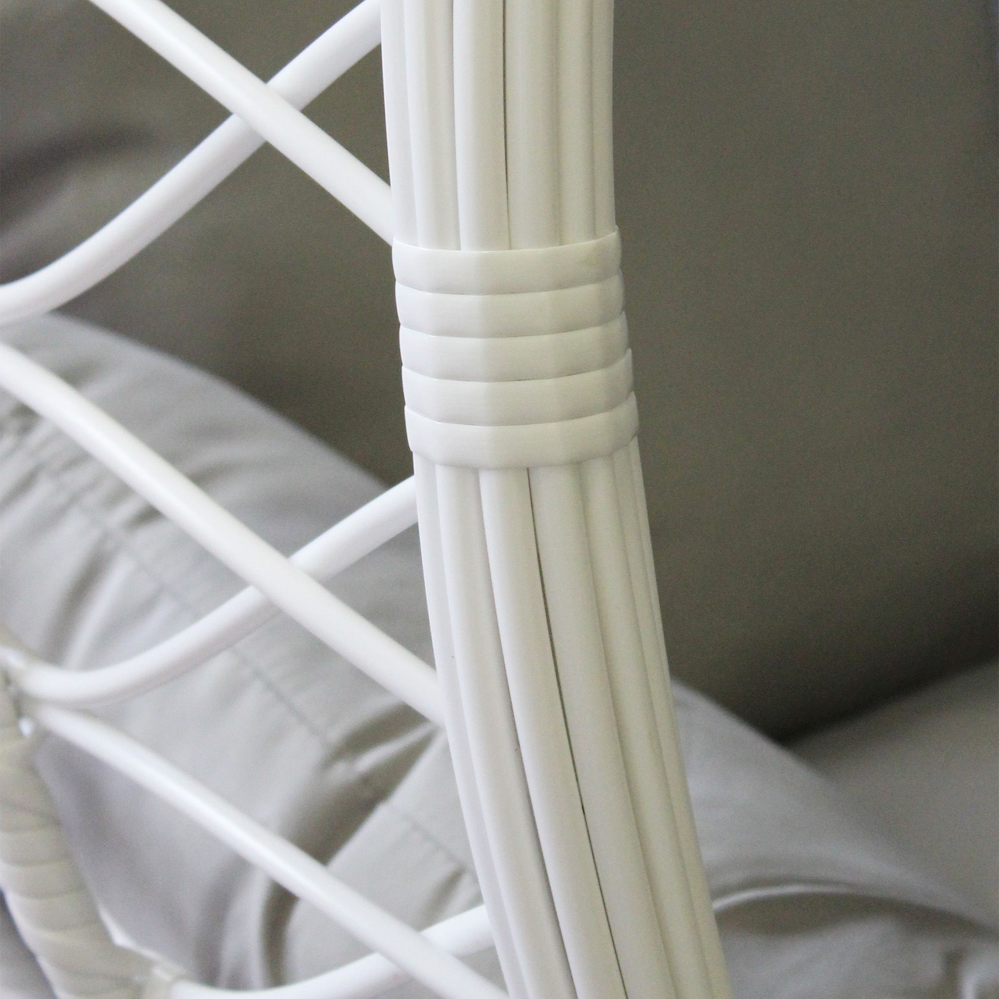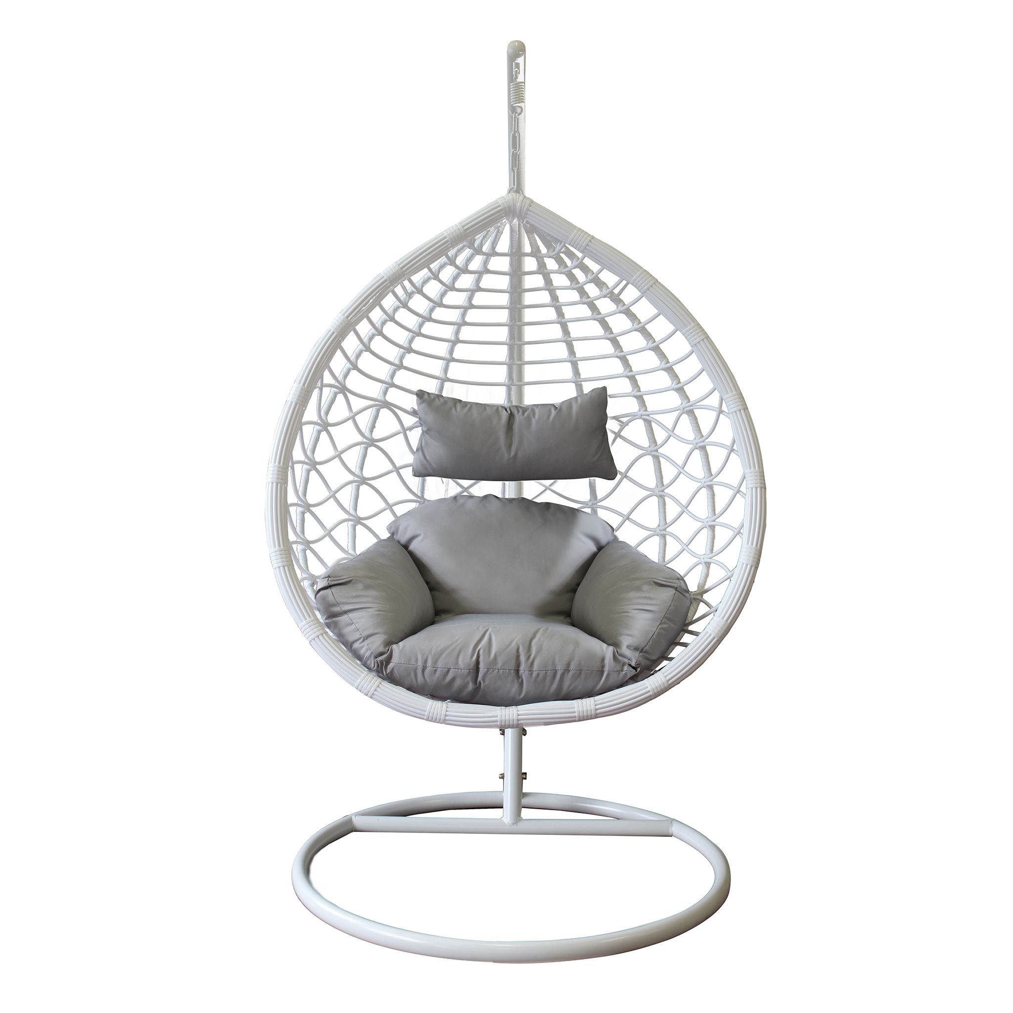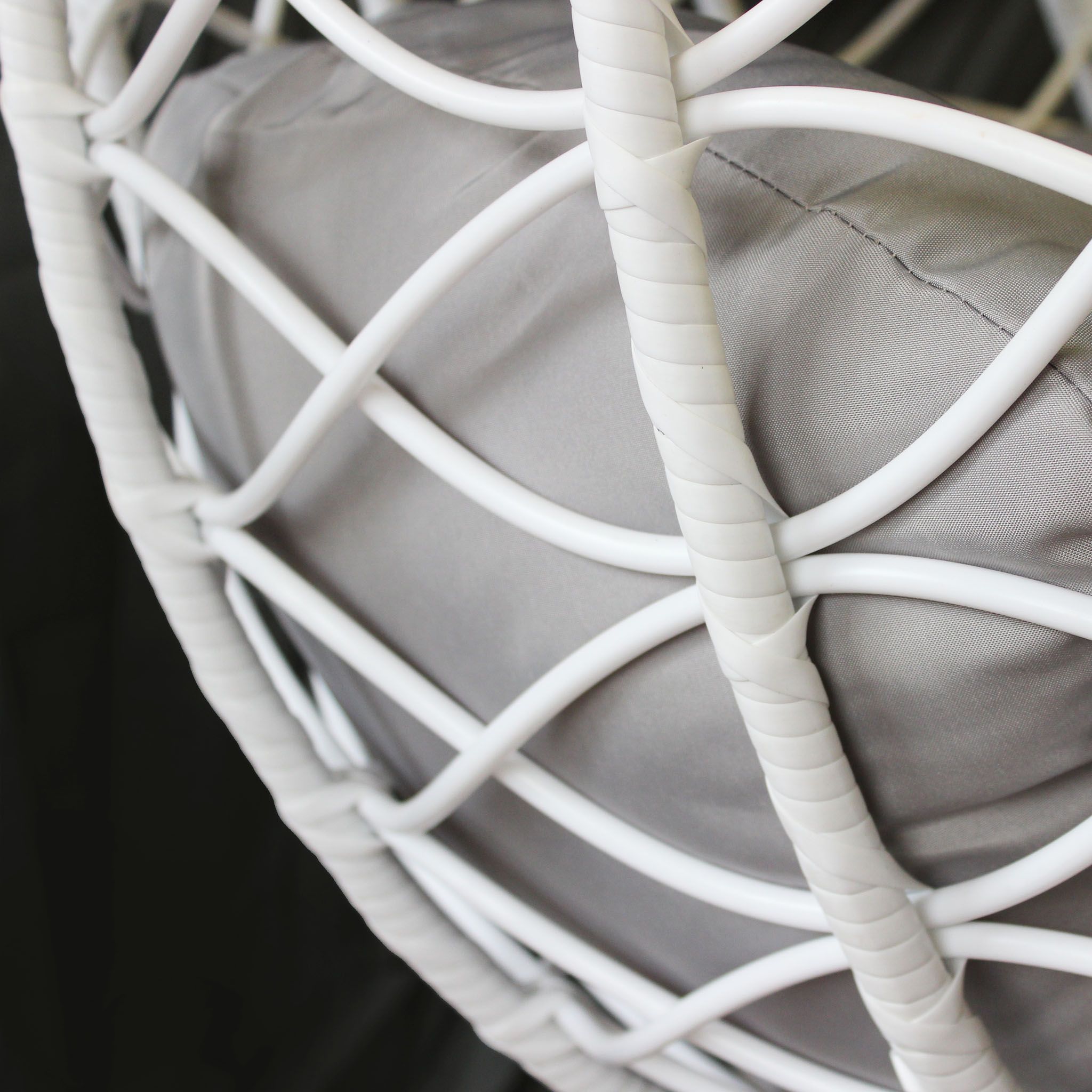 La sedia sospesa LANEY, con la sua struttura aerea e design moderno, è disponibile in bianco, grigio e marrone naturale. Perfetta per aggiungere un angolo di relax unico e stiloso all'esterno come all'interno della tua casa.