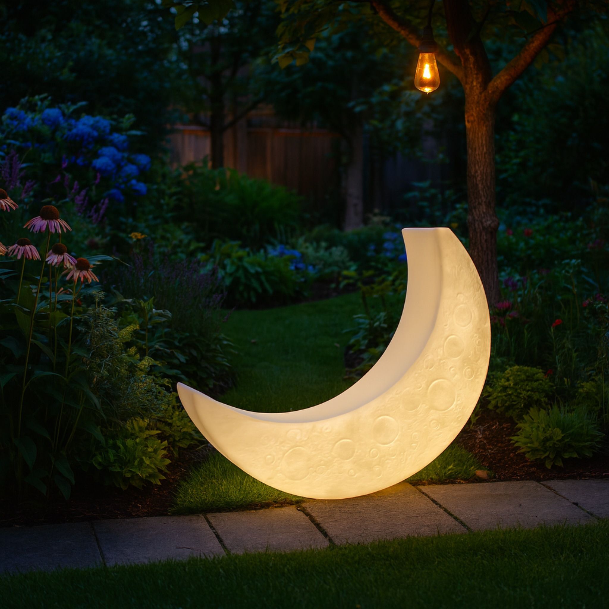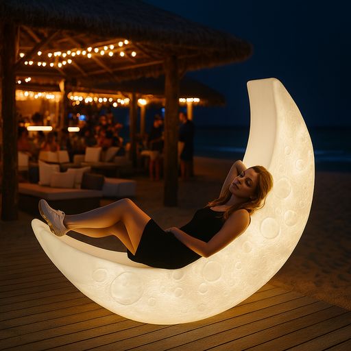 Lettino luminoso a forma di luna da esterno dal design iconico e avvolgente. Dotato di illuminazione con oltre trenta colorazioni selezionabili, crea atmosfere suggestive e personalizzabili. Realizzato in materiale resistente all’acqua, è perfetto per uso outdoor come giardini, terrazze, spazi lounge e altri ambienti contract.