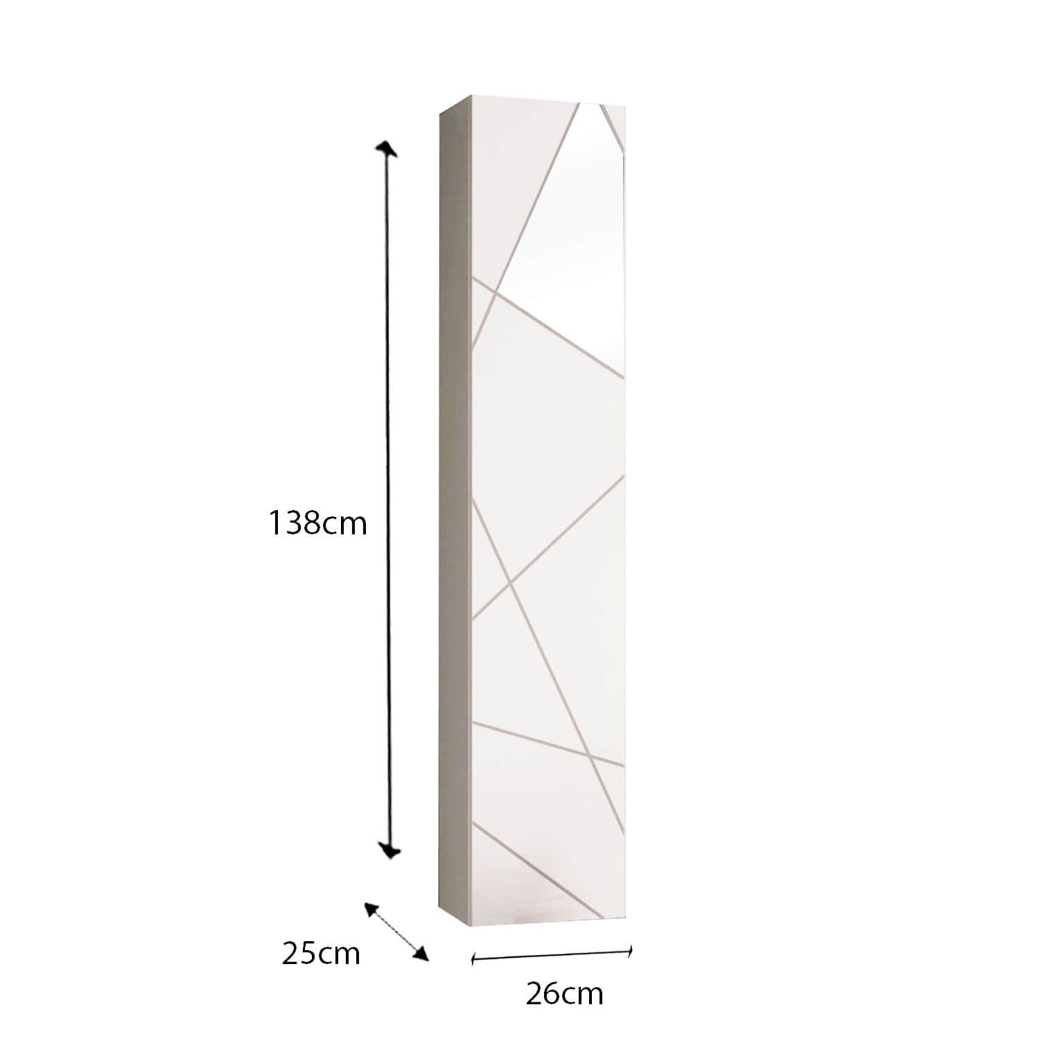 La colonna sospesa a un'anta della collezione LIA è un elemento di arredamento che coniuga eleganza e funzionalità in un design accattivante. Il suo stile si distingue per il gioco di linee geometriche che decorano la sua superficie anteriore, offrendo un punto focale di grande effetto visivo.Questo mobile sospeso, caratterizzato da una singola anta, ottimizza lo spazio verticale offrendo una soluzione di stoccaggio che si eleva da terra, contribuendo a un senso di ampiezza e ordine all'interno dell'ambiente. La silhouette slanciata e le proporzioni studiate rendono questa colonna un complemento ideale per bagni moderni e minimalisti, dove la ricerca di semplicità si sposa con la necessità di praticità.Sia che venga utilizzata singolarmente o abbinata ad altri pezzi della stessa collezione, questa colonna sospesa è una scelta sofisticata per chi desidera arricchire il proprio bagno con un mobile di design distintivo e contemporaneo.