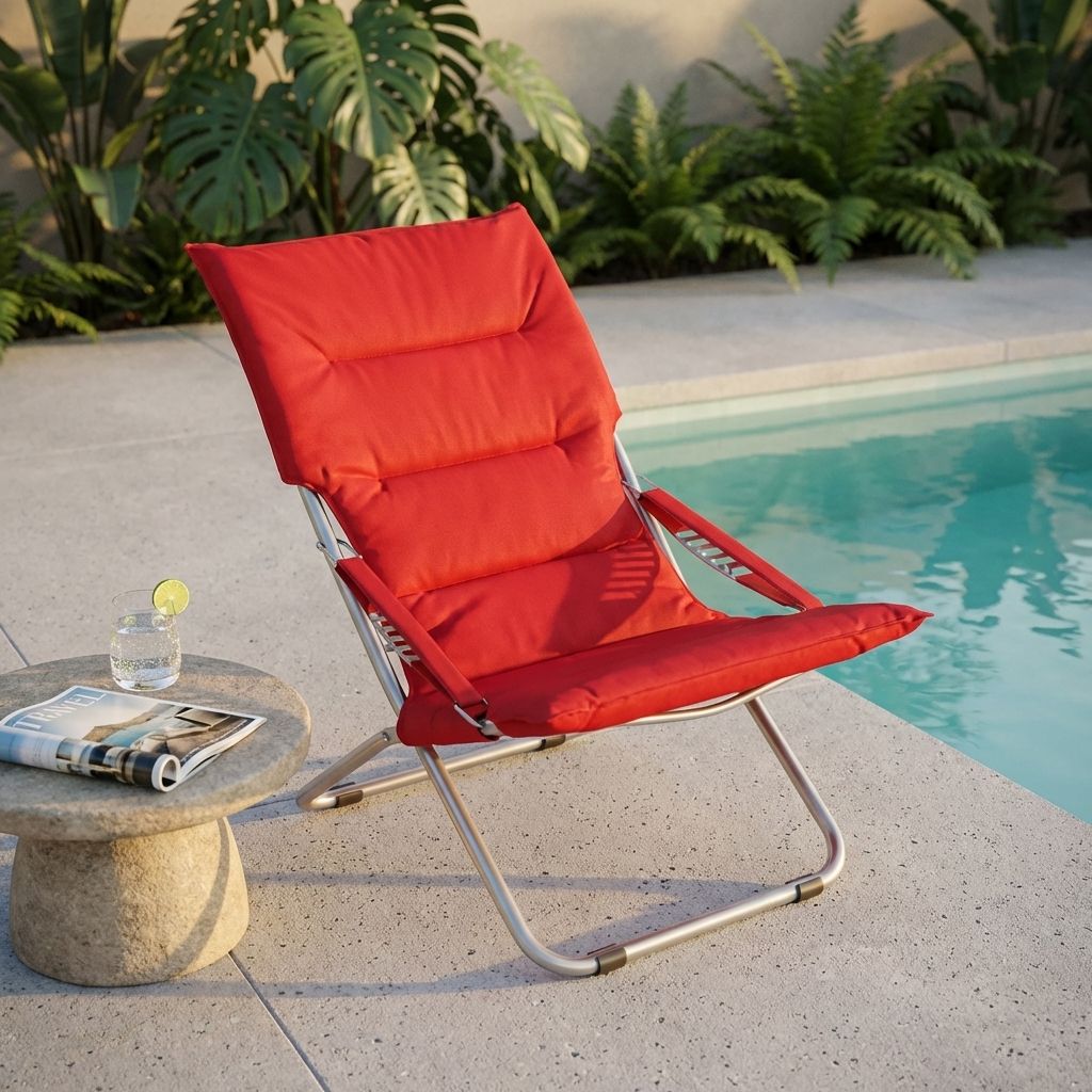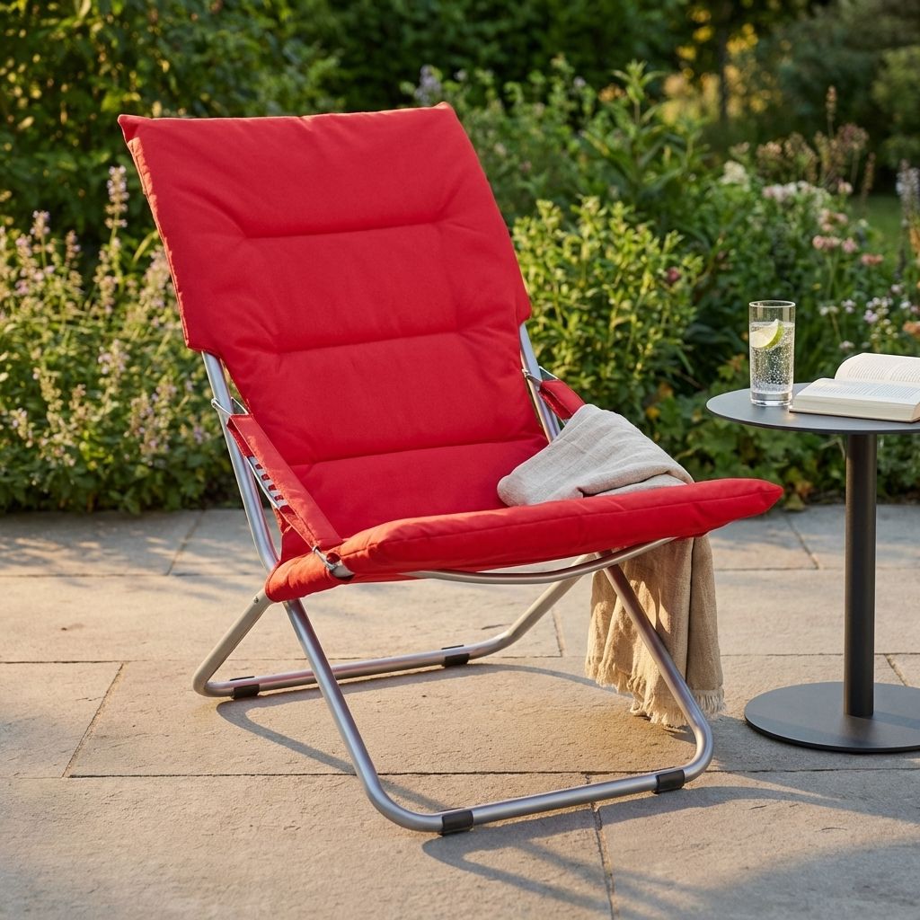 Sdraio pieghevole con struttura in metallo e seduta imbottita, progettata per offrire comfort e praticità. Leggera e facile da spostare, è ideale per giardino, terrazza o spiaggia.