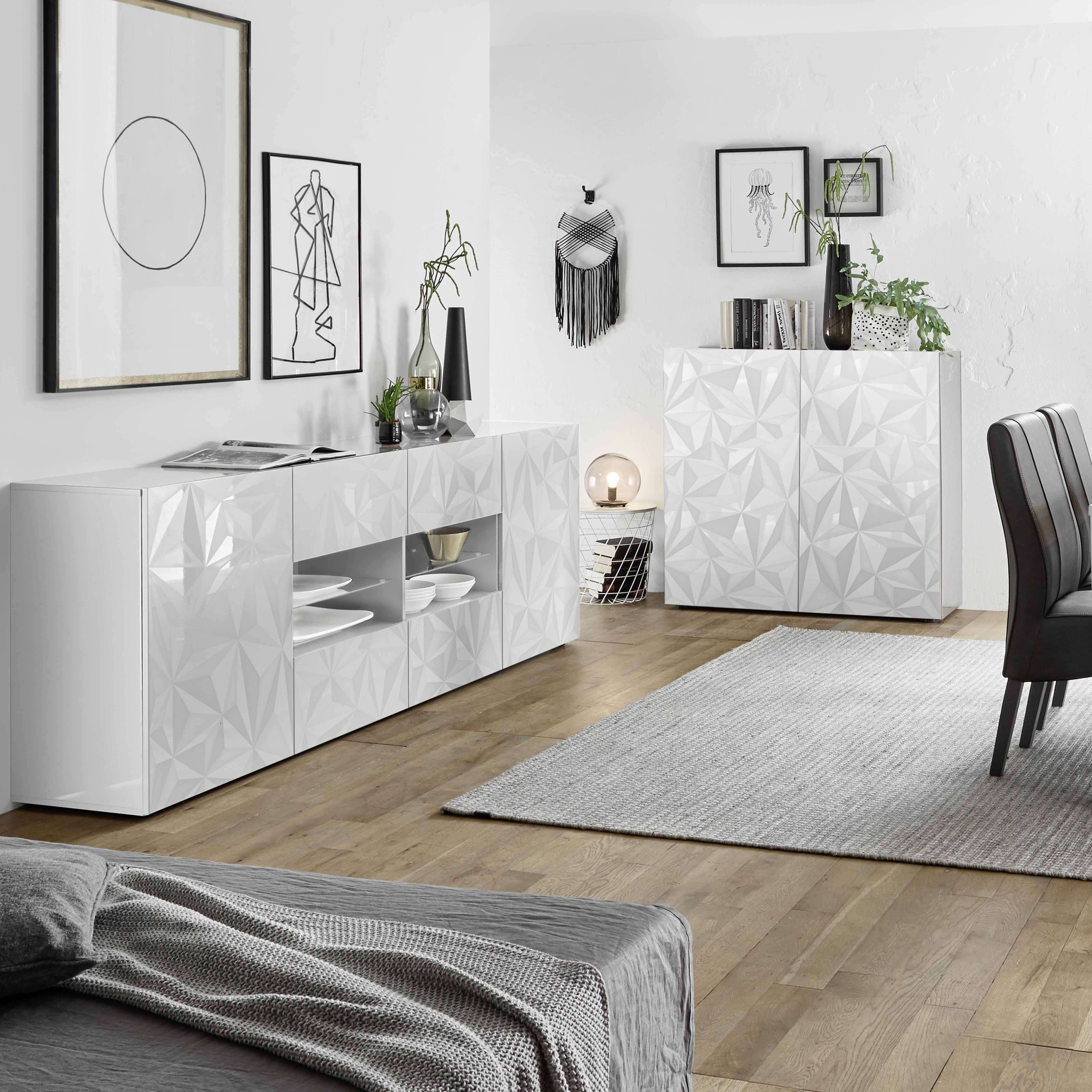 Rivisita lo spazio con la madia LION: il massimo della modernità incontra l'eleganza funzionale. Questo pezzo di design, disponibile in bianco e grigio, offre un gioco di luci con il suo design geometrico, garantendo allo stesso tempo ampio spazio di archiviazione. Perfetta per ogni stile d'arredo, la madia LION è la scelta ideale per chi cerca un elemento d'arredo distintivo e pratico.