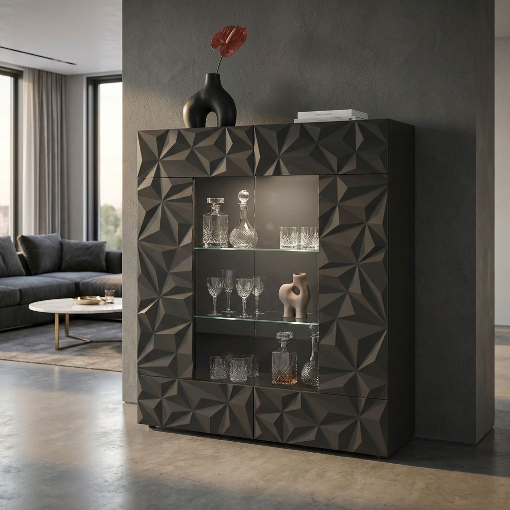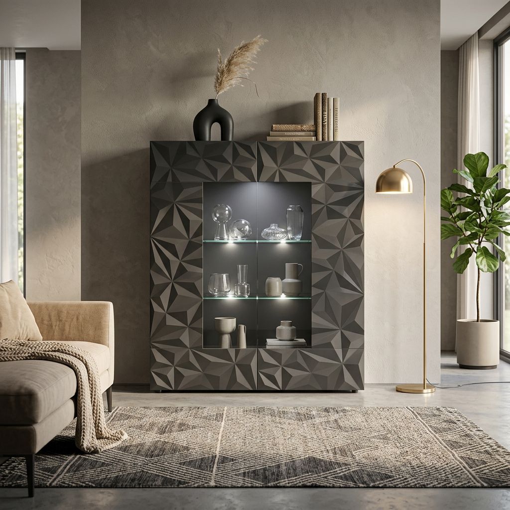 Esalta il tuo arredo con la vetrina LION: eleganza contemporanea disponibile in bianco e grigio. Spazi ampi, illuminazione sofisticata, perfetta per valorizzare collezioni e cristalleria in soggiorno o sala da pranzo. Aggiungi un tocco di modernità funzionale con LION.