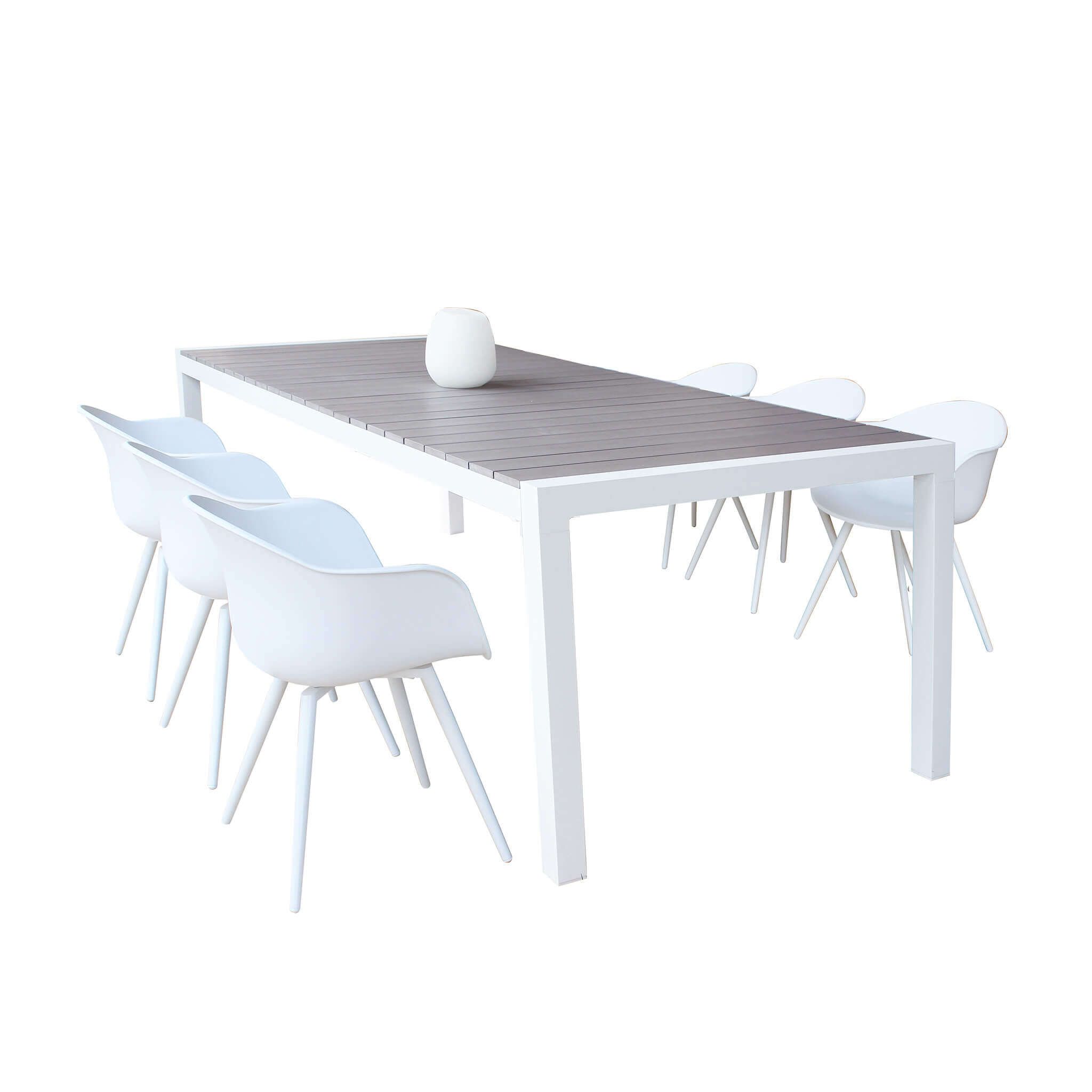 Il piano è realizzato in doghe di polywood, materiale sintetico molto resistente, perfetto per l'esterno..