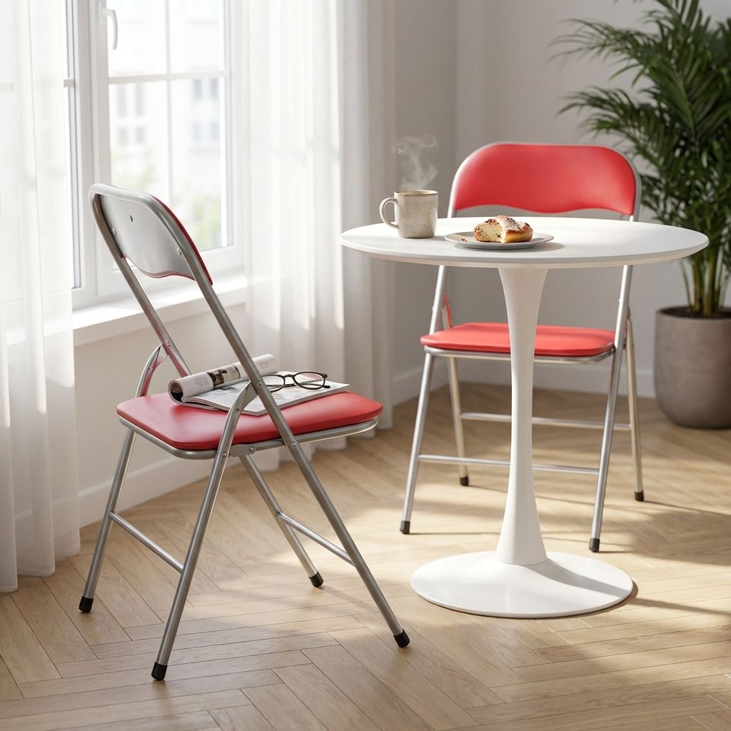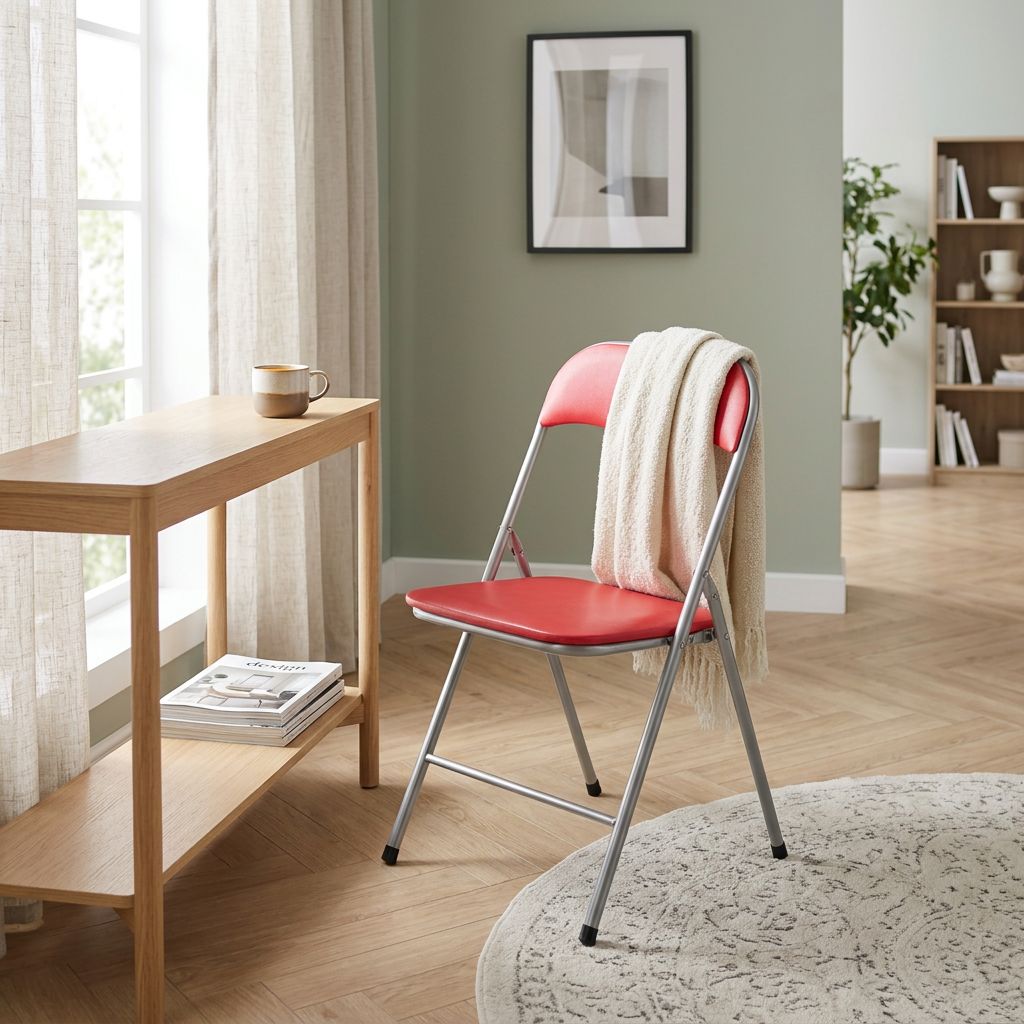 LUCIE è una sedia pieghevole disponibile in colore rosso, nero, tortora, bianco, arancione, azzurro trama parigi, londra e new york con la possibilità di scegliere il set da 2, 4 e 6 sedie