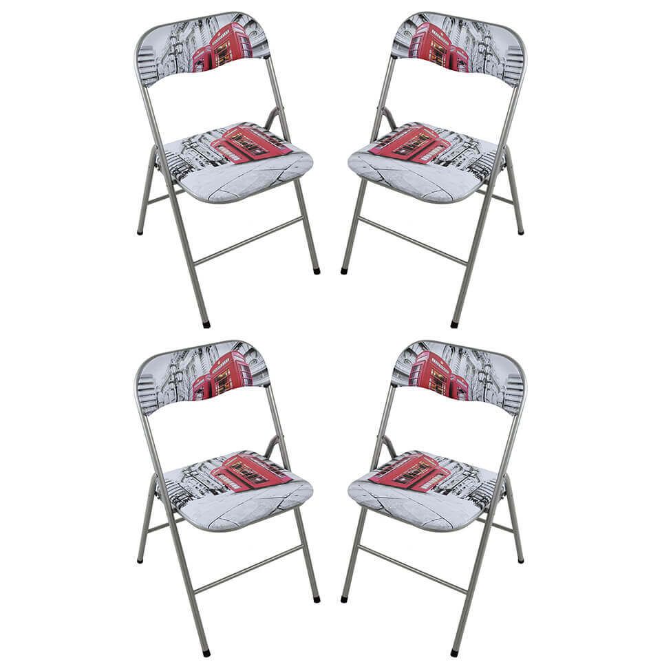 LUCIE è una sedia pieghevole disponibile in colore rosso, nero, tortora, bianco, arancione, azzurro trama parigi, londra e new york con la possibilità di scegliere il set da 2, 4 e 6 sedie