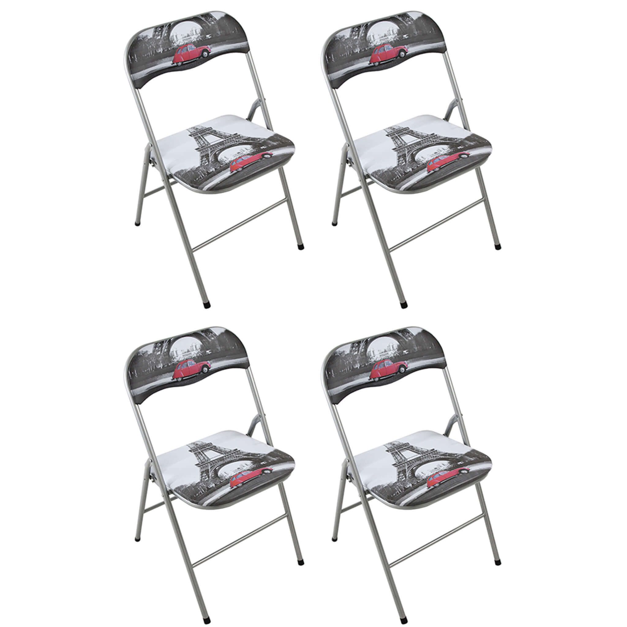 LUCIE è una sedia pieghevole disponibile in colore rosso, nero, tortora, bianco, arancione, azzurro trama parigi, londra e new york con la possibilità di scegliere il set da 2, 4 e 6 sedie