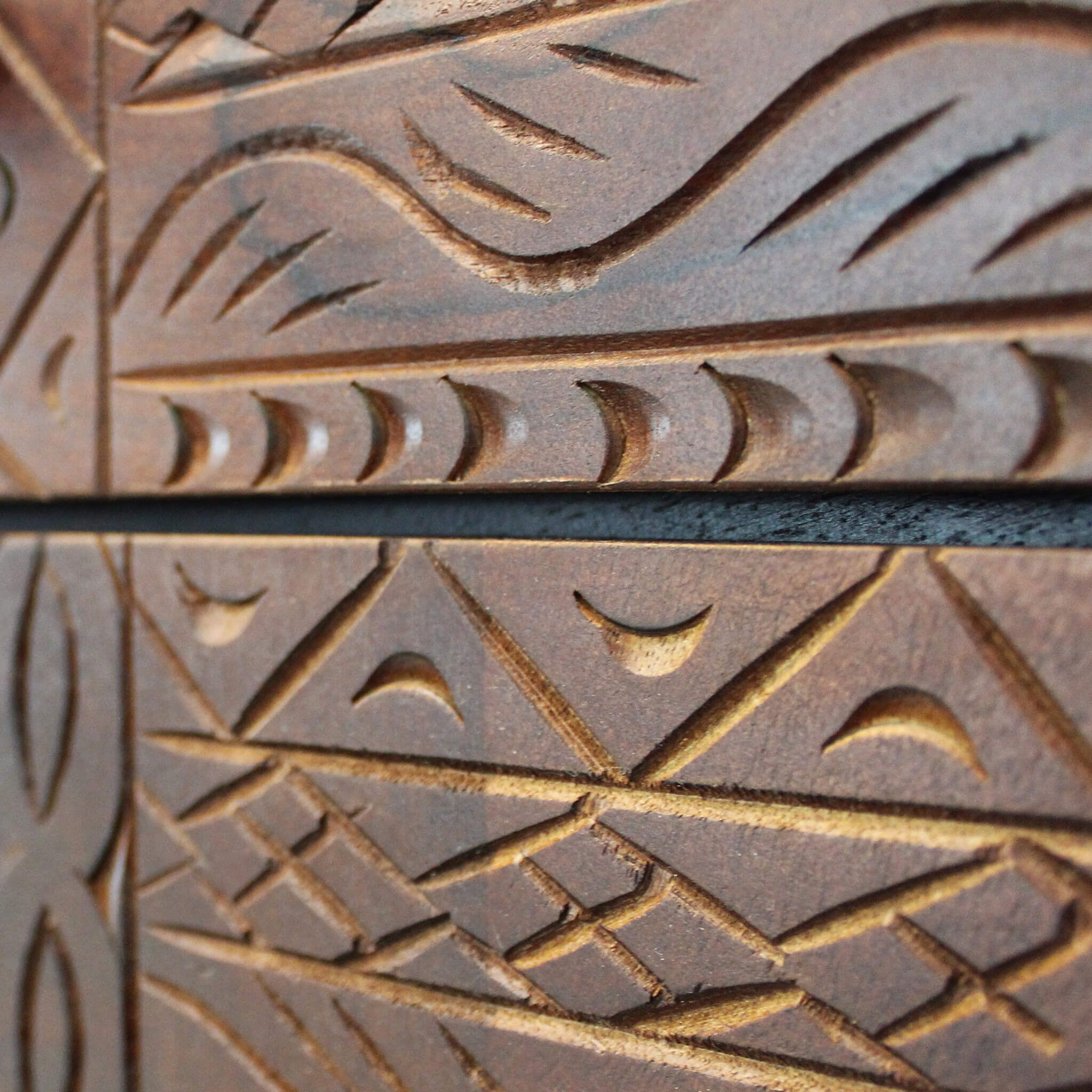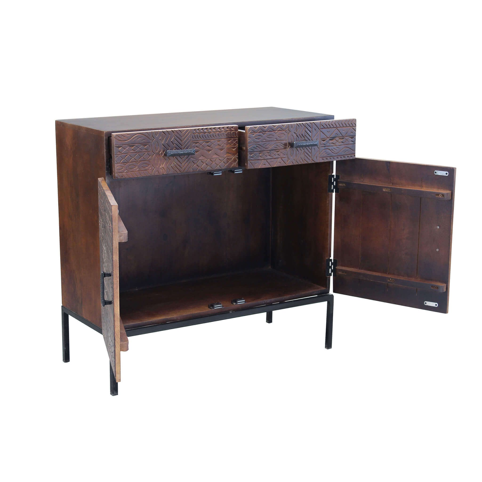 Legno di mango con decori incisi, struttura in metallo resistente, forme minimal e stile etnico: il protagonista in questione è MANTRA. Per lo stile orientale ed etnico della tua casa aggiungi la bellezza unica di MANTRA per arricchire di autenticità le tue giornate. Il suo colore scuro e intenso dona decisione e calore alla stanza in cui lo posizionerai, mentre il suo stile naturale è sempre un tocco di classe.