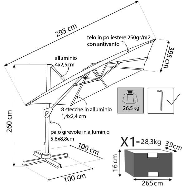 L'ombrellone MANU è disponibile in dimensione 3x3 m e 3x4 m