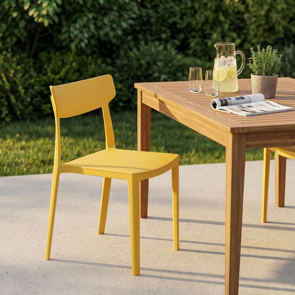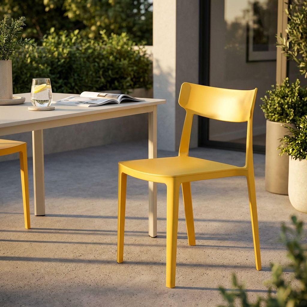 La sedia moderna in polipropilene è disponibile in sei colori: rosso, grigio, bianco, verde, giallo e blu. Perfetta per interni ed esterni.