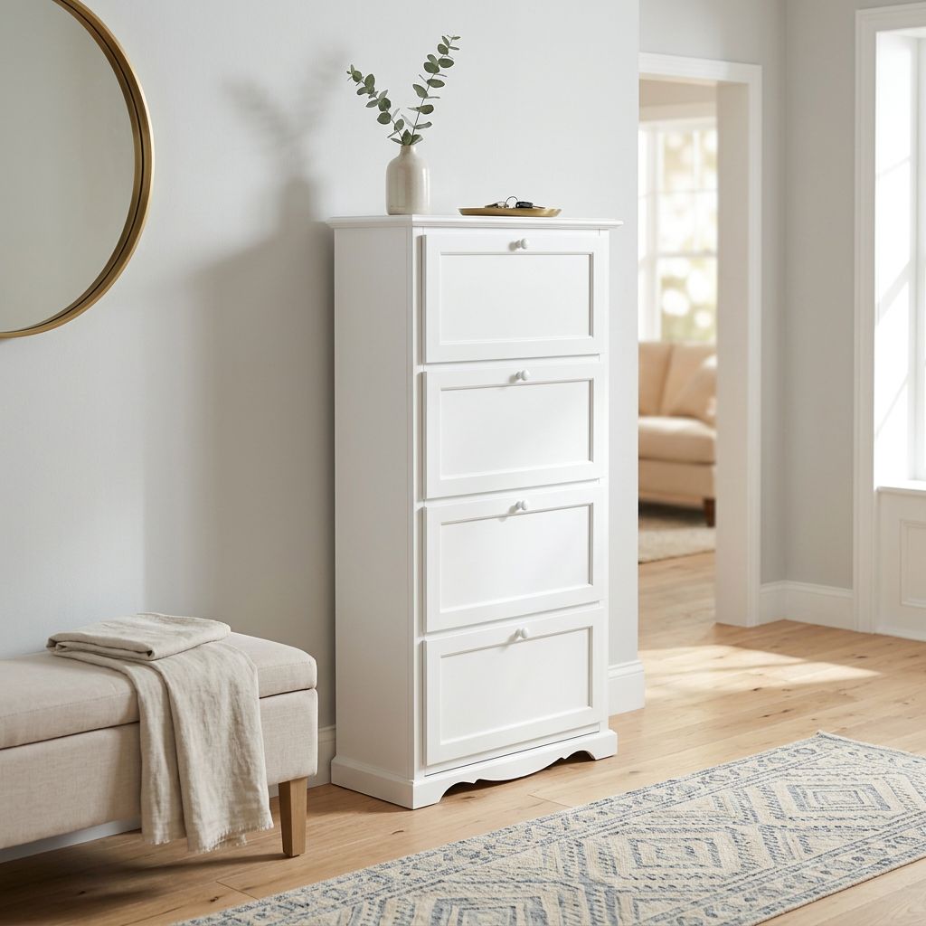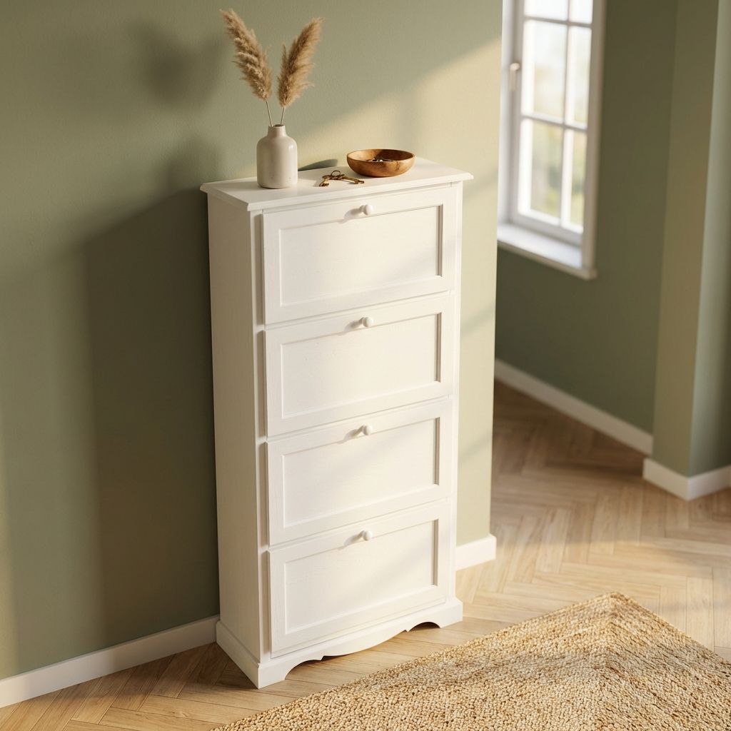 La scarpiera Mary è perfetta per organizzare le tue scarpe senza sacrificare lo stile della tua casa. Con ante pratiche e facili da aprire, avrai sempre accesso facile alle tue scarpe preferite, mantenendo l'ordine in ogni stanza. Con la sua solida struttura in legno massello, impiallacciato e truciolato, otterrai qualità incredibile a un prezzo conveniente.