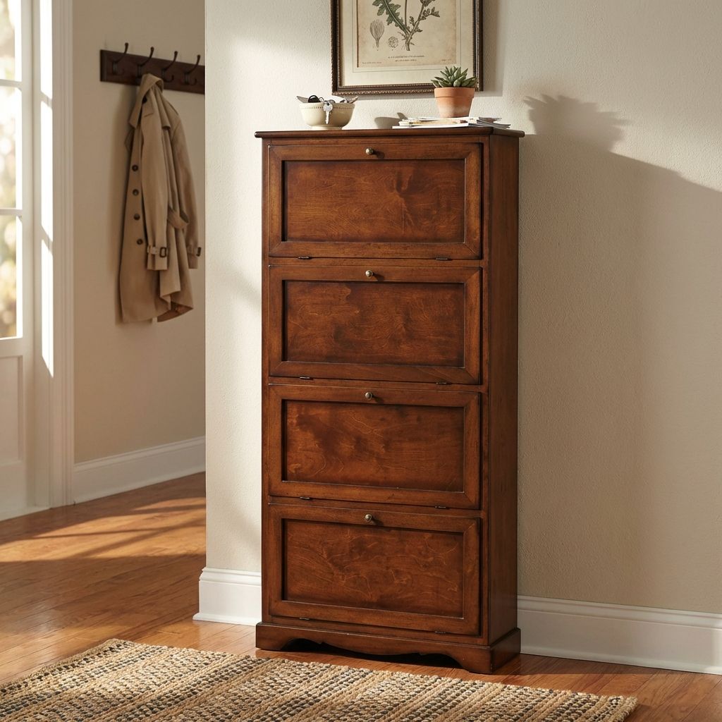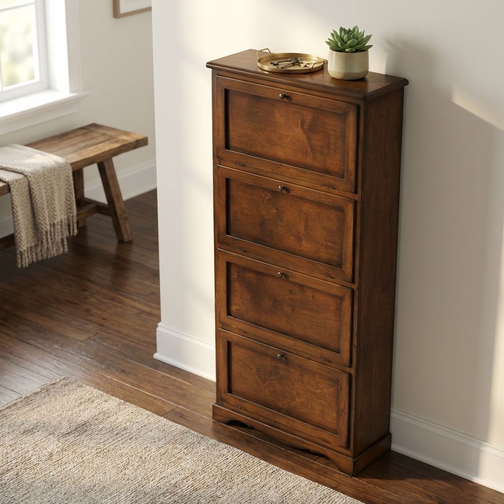 La scarpiera Mary è perfetta per organizzare le scarpe senza perdere lo stile di casa. Con ante pratiche e veloci da aprire, è facile raggiungere le tue scarpe preferite. Puoi posizionarla in qualsiasi stanza, grazie alla sua struttura in legno massello, impiallacciato e truciolato. Ottima qualità a un prezzo incredibile!