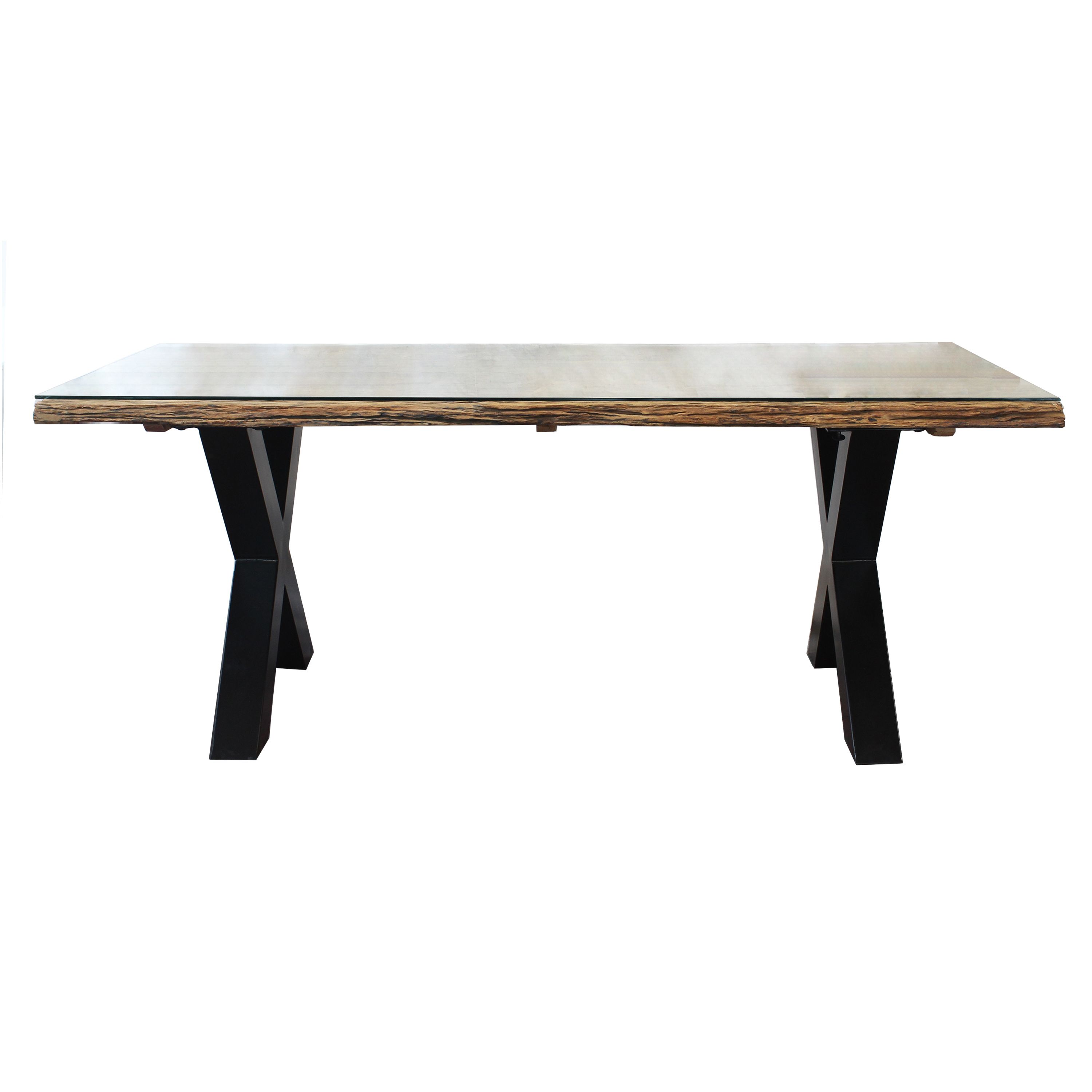 Il tavolo con piano in legno ferroviario riciclato e vetro temperato, sostenuto da una struttura in metallo incrociato, è un complemento d’arredo distintivo e versatile, perfetto per arricchire ambienti moderni o industriali con stile e personalità.
