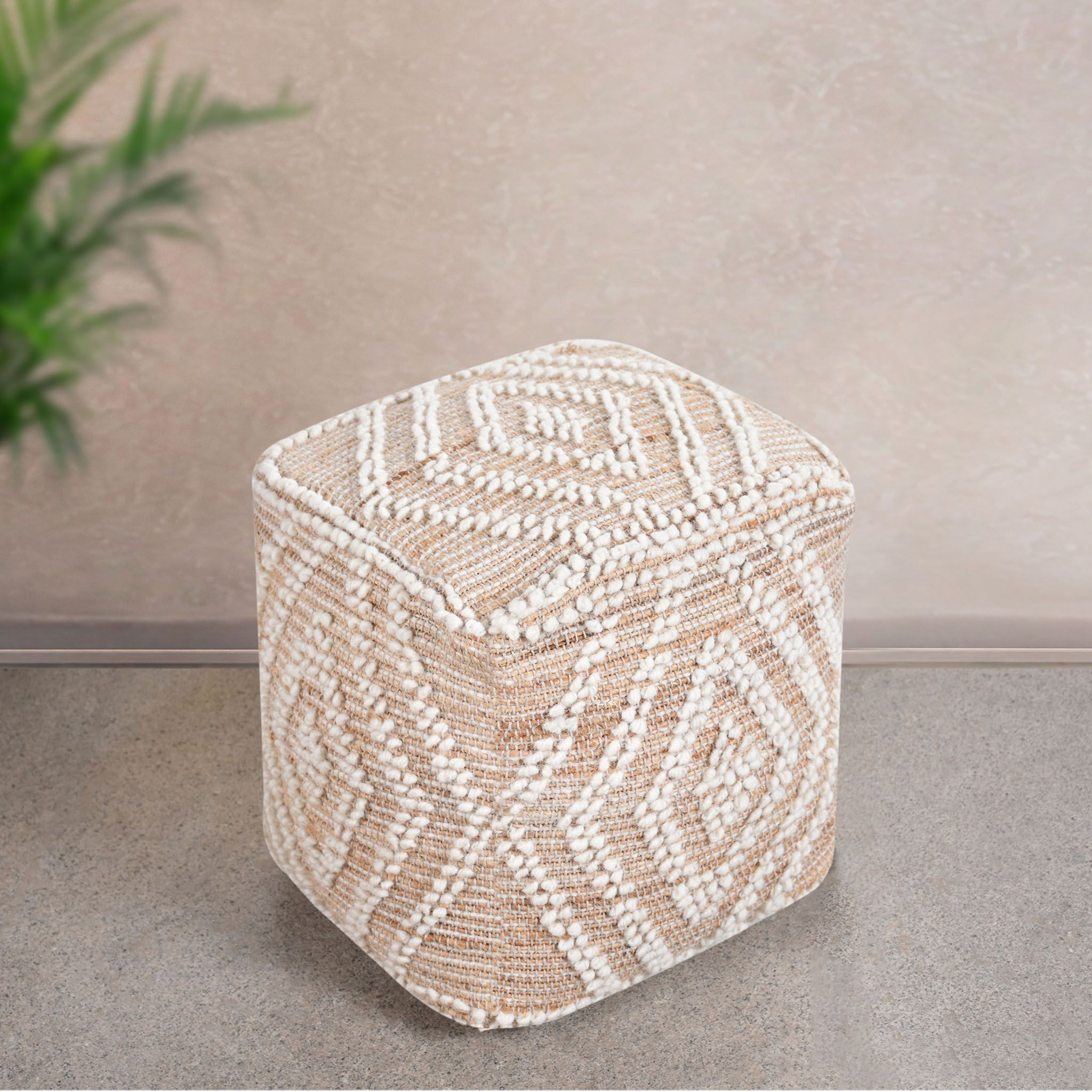 Pouf decorativo con copertura in materiali naturali, caratterizzato da una texture materica e da lavorazioni in rilievo. Versatile e raffinato, è ideale come seduta occasionale o complemento d’arredo. Il design naturale lo rende adatto a diversi stili d'arredo