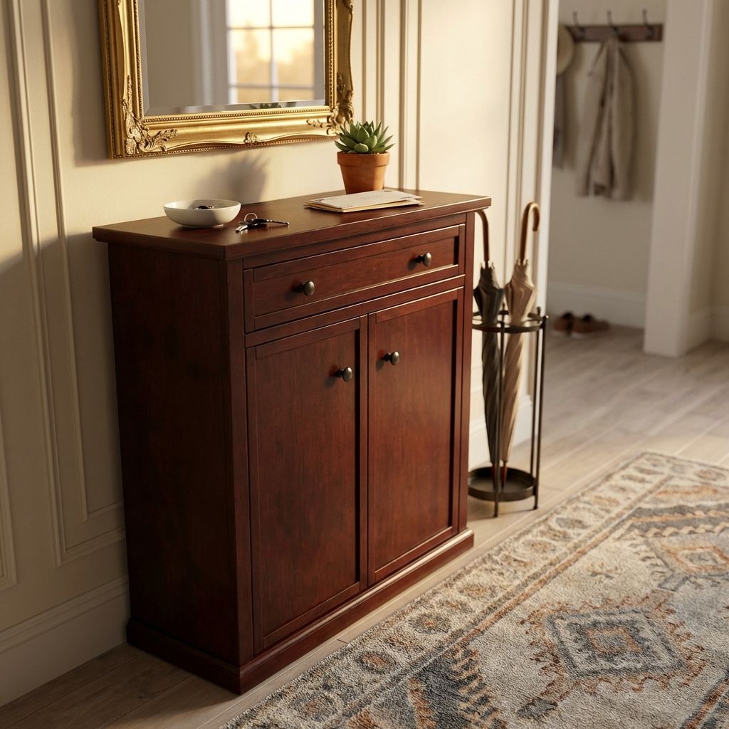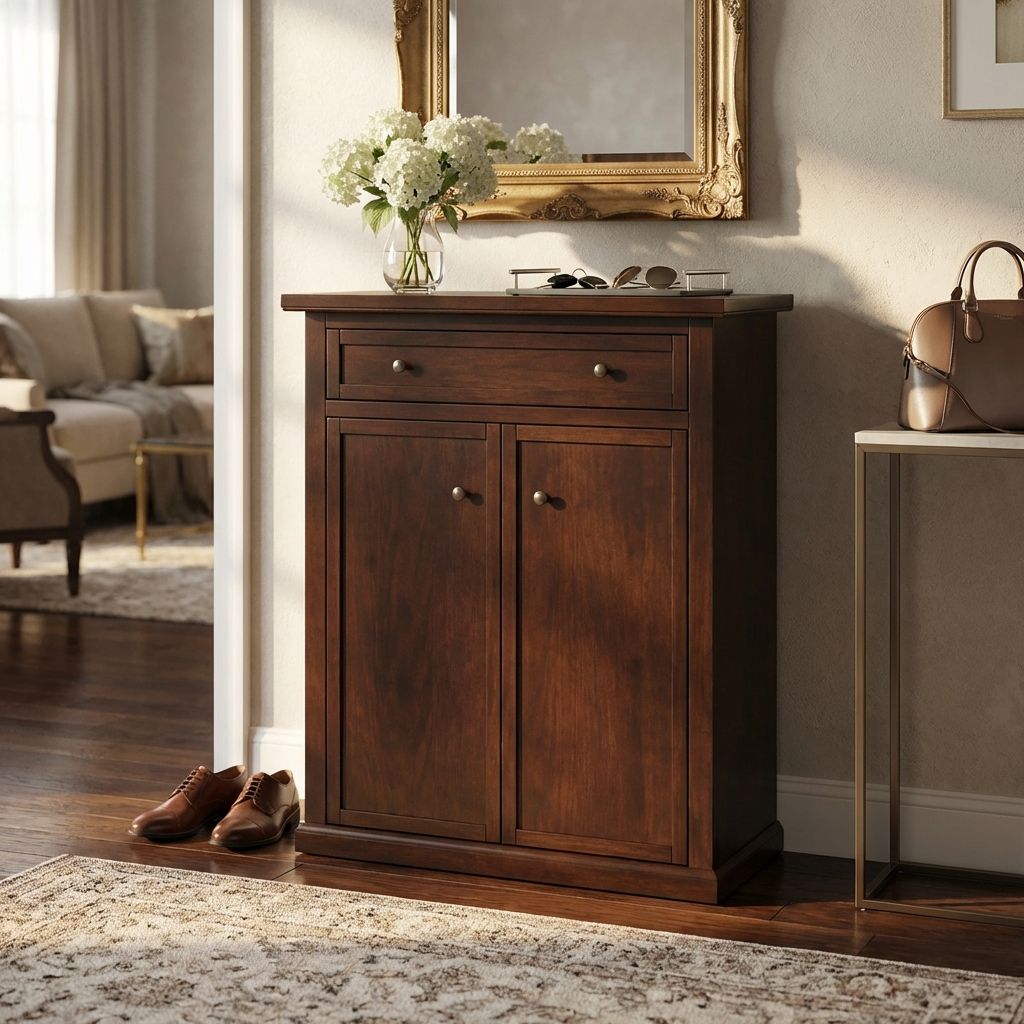 La scarpiera Melissa è una soluzione perfetta per organizzare le tue scarpe senza sacrificare lo stile. Con le sue ante classiche, offre un ampio spazio per tutte le tue calzature, rendendo facile l'accesso e l'utilizzo. Realizzata con materiali resistenti come il legno massello, l'impiallacciatura, il truciolato e il metallo, questa scarpiera è solida e conveniente.
