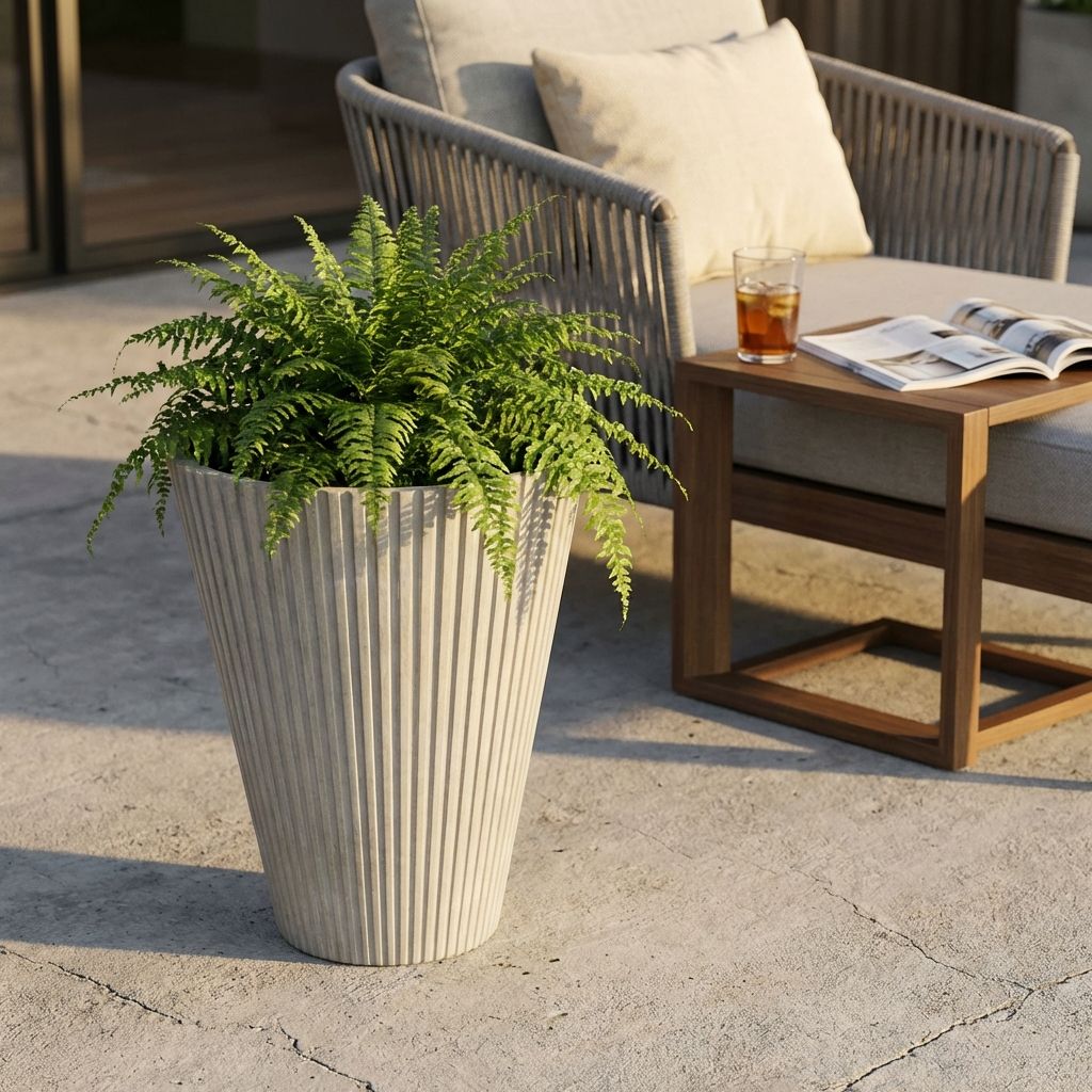 MERCEDES è un vaso da giardino in resina con uno stile unico e svasato che lo rende elegante e sofisticato, ma ancora comodo. La sua forma slim di base e i lati slanciati gli conferiscono un aspetto dinamico ed elegante. Un partner di vita perfetto per ogni circostanza.