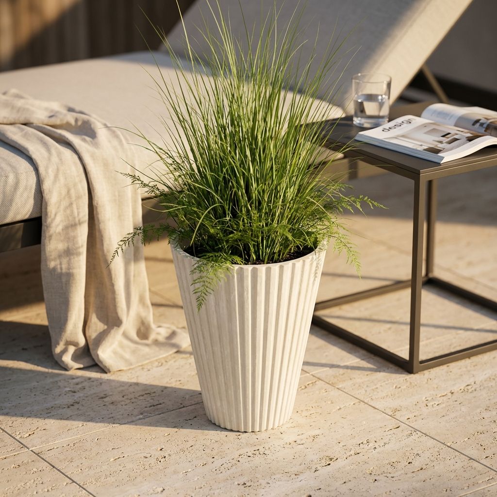 MERCEDES è un vaso in resina con uno stile svasato che lo rende unico, elegante e sofisticato. Grazie alla sua forma fantastica, si adatta perfettamente a tutte le circostanze. La sua base stretta e i lati slanciati trasmettono dinamismo e conferiscono un tocco sottile ed elegante che affascina gli amanti del giardinaggio e del design.