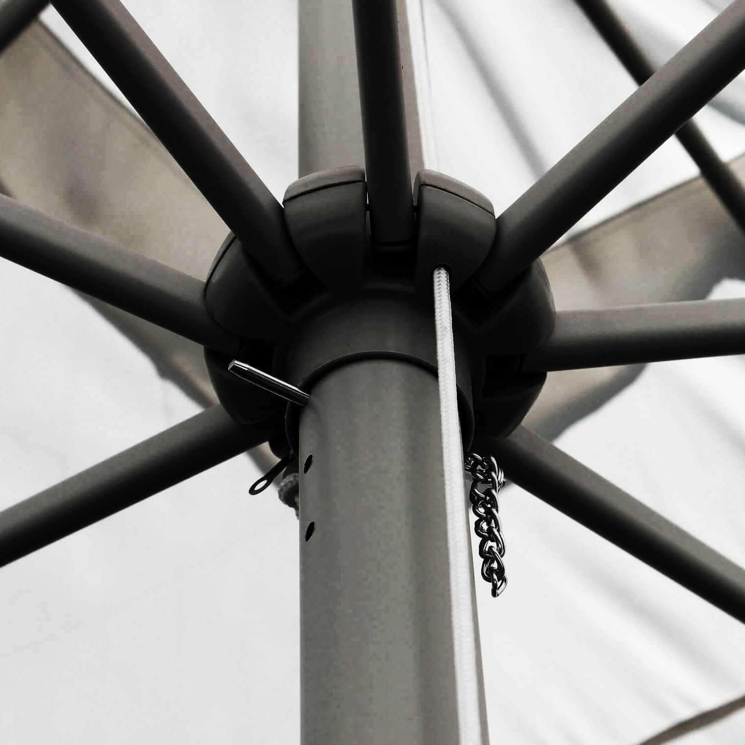 L'ombrellone MERIDIES, offerto nelle eleganti tonalità di bianco, antracite, tortora e grigio, è disponibile per l'acquisto nelle dimensioni di 3x3 metri o 3x4 metri.