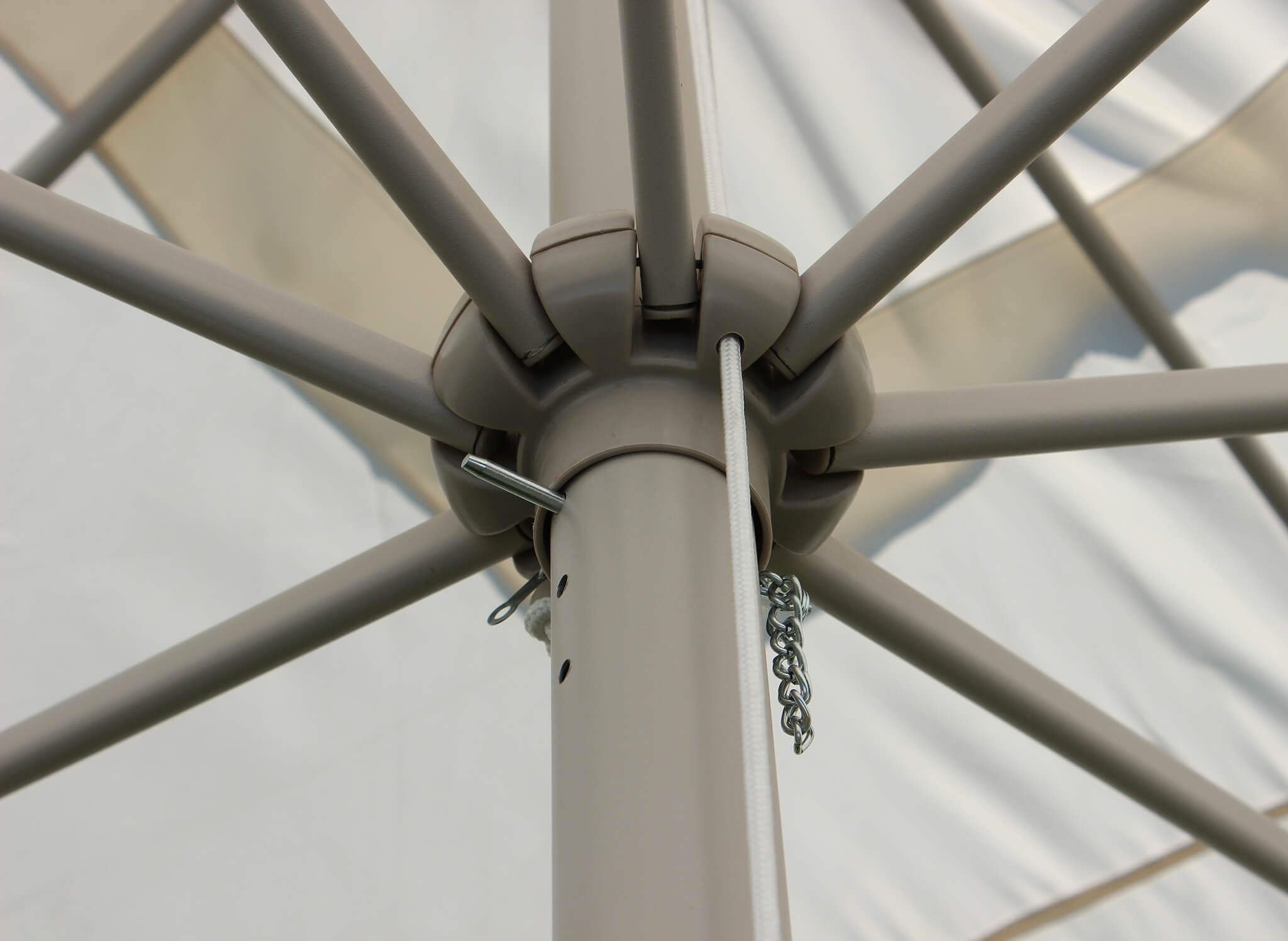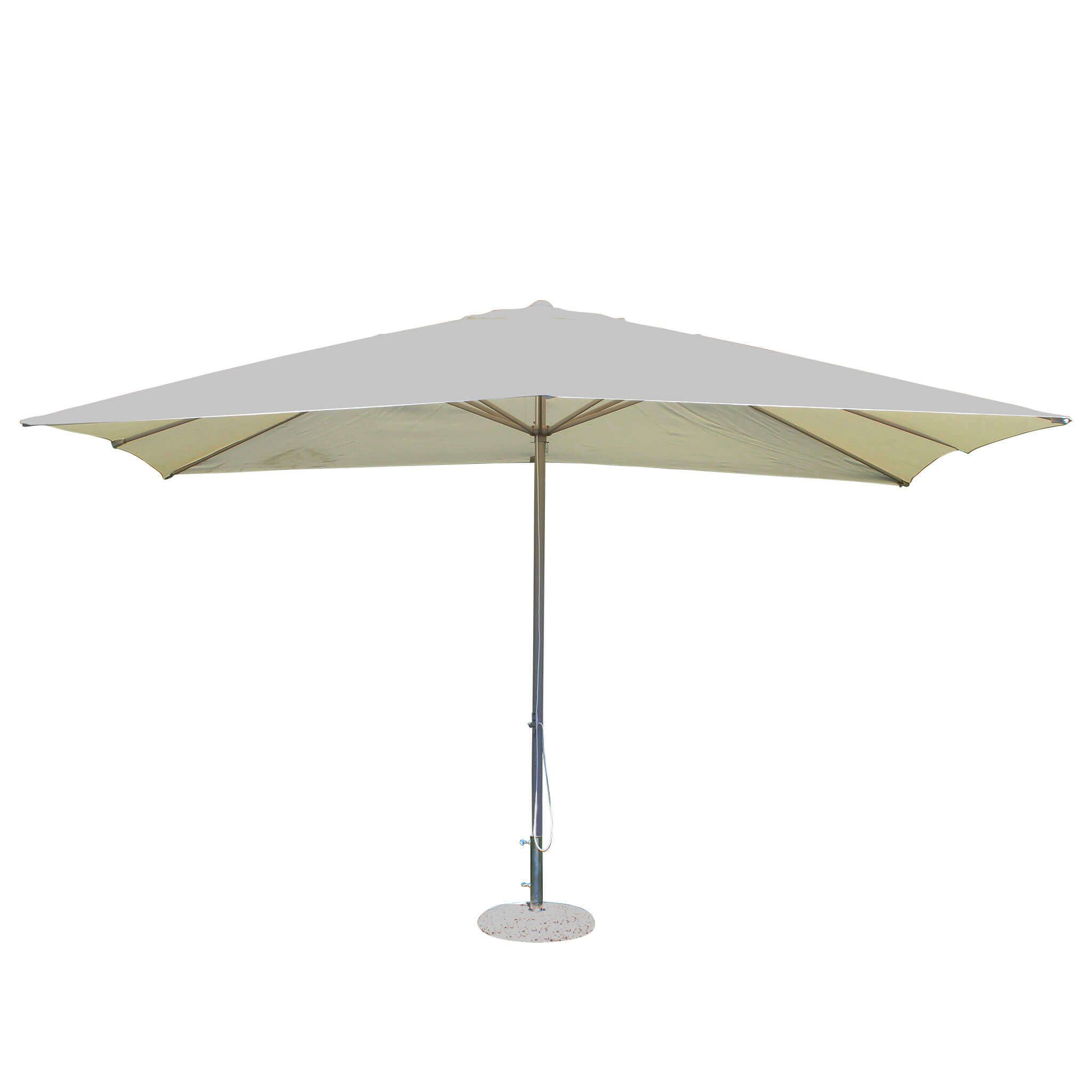 L'ombrellone MERIDIES, offerto nelle eleganti tonalità di bianco, antracite, tortora e grigio, è disponibile per l'acquisto nelle dimensioni di 3x3 metri o 3x4 metri.
