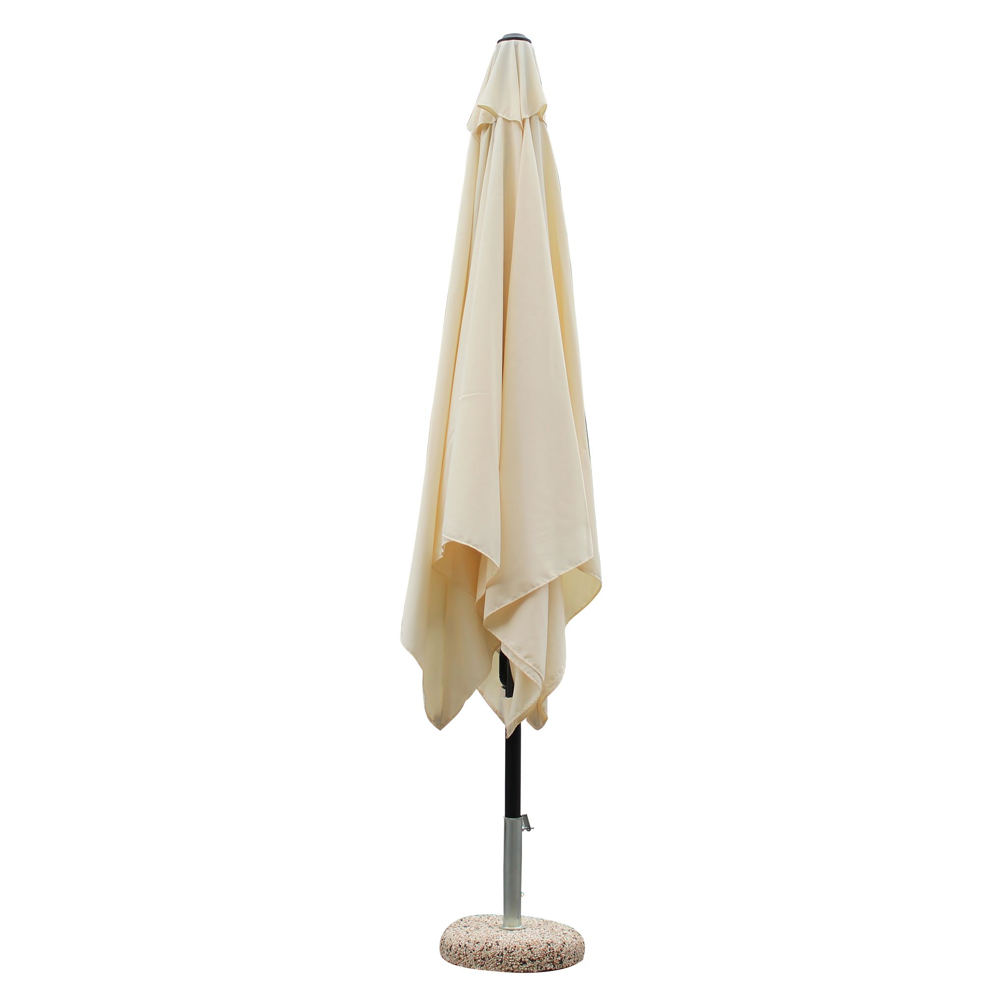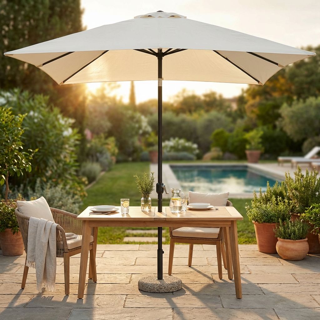 L'ombrellone MERIDIES, offerto nelle eleganti tonalità di bianco, antracite, tortora e grigio, è disponibile per l'acquisto nelle dimensioni di 3x3 metri o 3x4 metri.