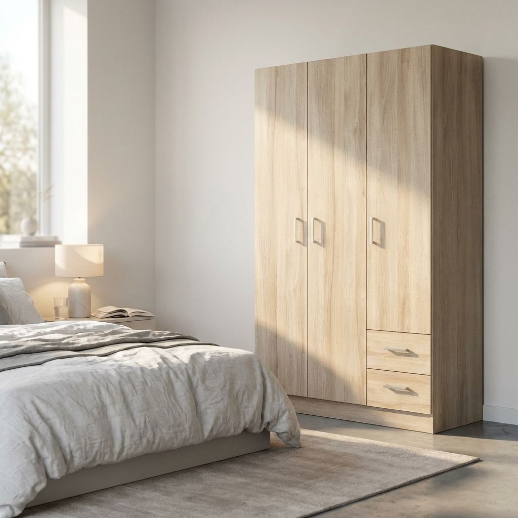 L'armadio MERIN è disponibile in colore quercia, olmo e bianco