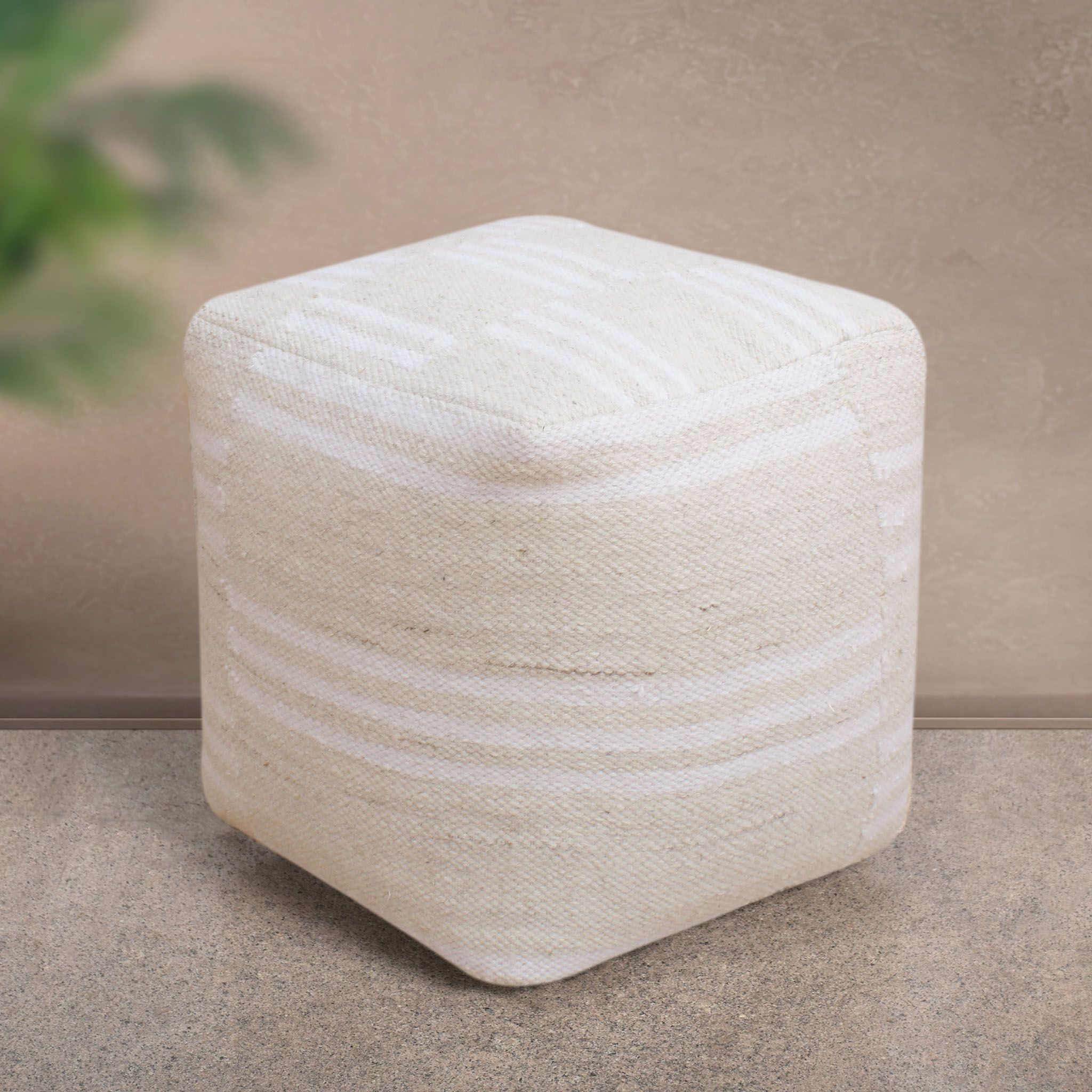 Pouf decorativo con copertura in materiali naturali, caratterizzato da una texture materica e da lavorazioni in rilievo. Versatile e raffinato, è ideale come seduta occasionale o complemento d’arredo. Il design naturale lo rende adatto a diversi stili d'arredo