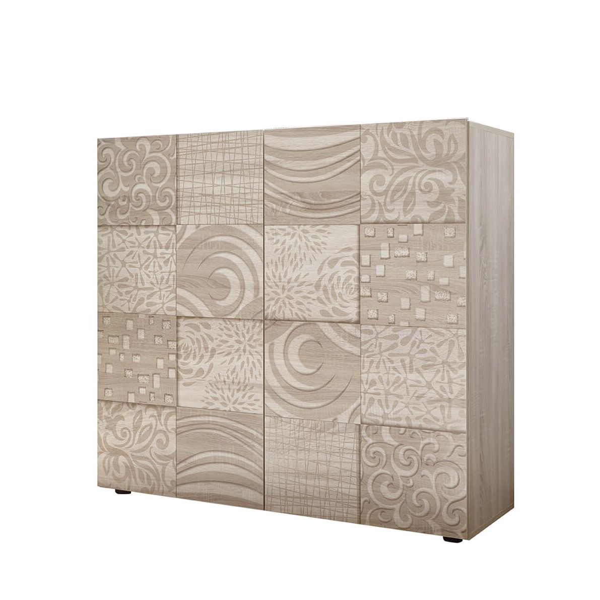 La credenza MORI è un'eccellenza del design contemporaneo che esalta la funzionalità con un tocco artistico. Realizzata con finitura in rovere chiaro, questa credenza moderna vanta una serie di motivi decorativi incisi che danzano sulle sue ante, unendo disegni geometrici e floreali per un effetto tridimensionale unico.Il design è pulito e sofisticato, con linee semplici che lasciano che le incisioni artistiche parlino da sole, facendo di questa credenza non solo un complemento d'arredo, ma un punto focale che attira l'attenzione in qualsiasi stanza. La struttura e l'estetica raffinata rendono la credenza MORI perfetta per ambienti residenziali o uffici eleganti, dove il design è al servizio dell'efficienza e dello stile.