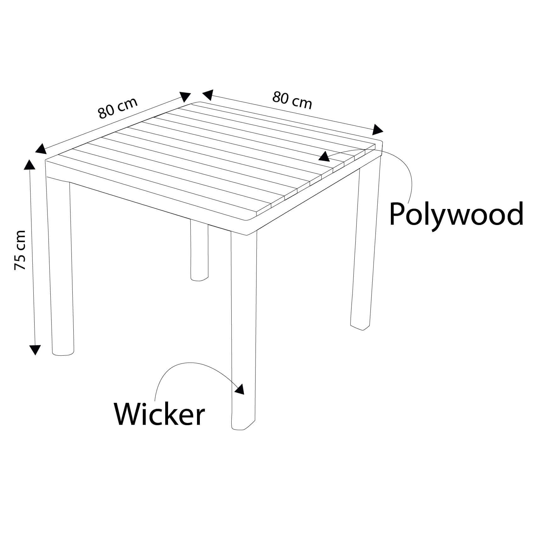 • Struttura in alluminio wicker BIANCO GRIGIO o MARRONE materiale UV protection piano del tavolo in POLYWOOD colore abbinato cm 80 x 80 x 75 h