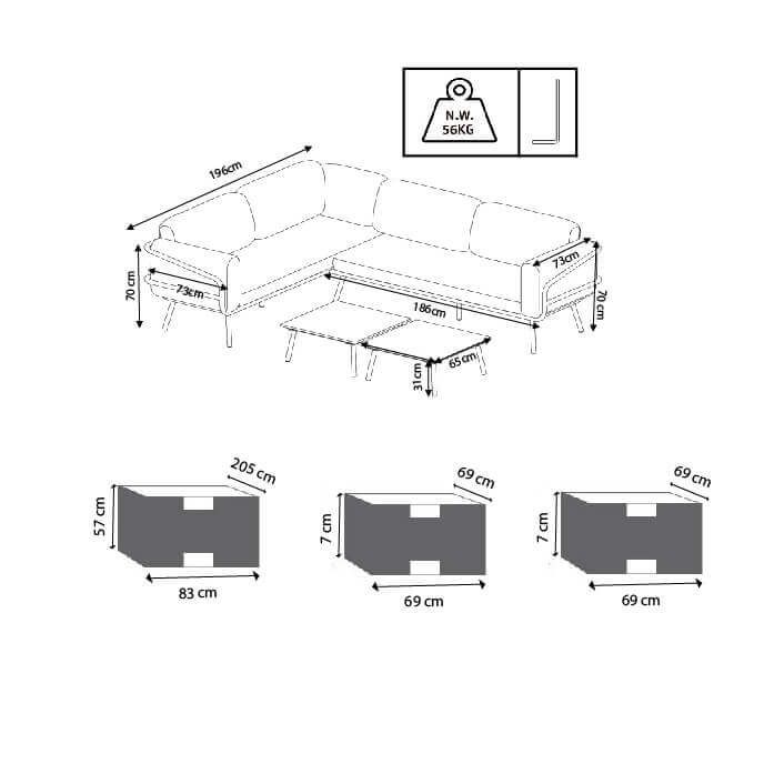 Il salotto angolare NEK è il complemento perfetto per il tuo spazio esterno. Con un design moderno e minimalista, aggiunge stile e classe a qualsiasi giardino, terrazzo o resort. Realizzato con materiali resistenti alle intemperie come alluminio e poliestere, non richiede alcuna manutenzione extra. Semplicemente eccezionale!
