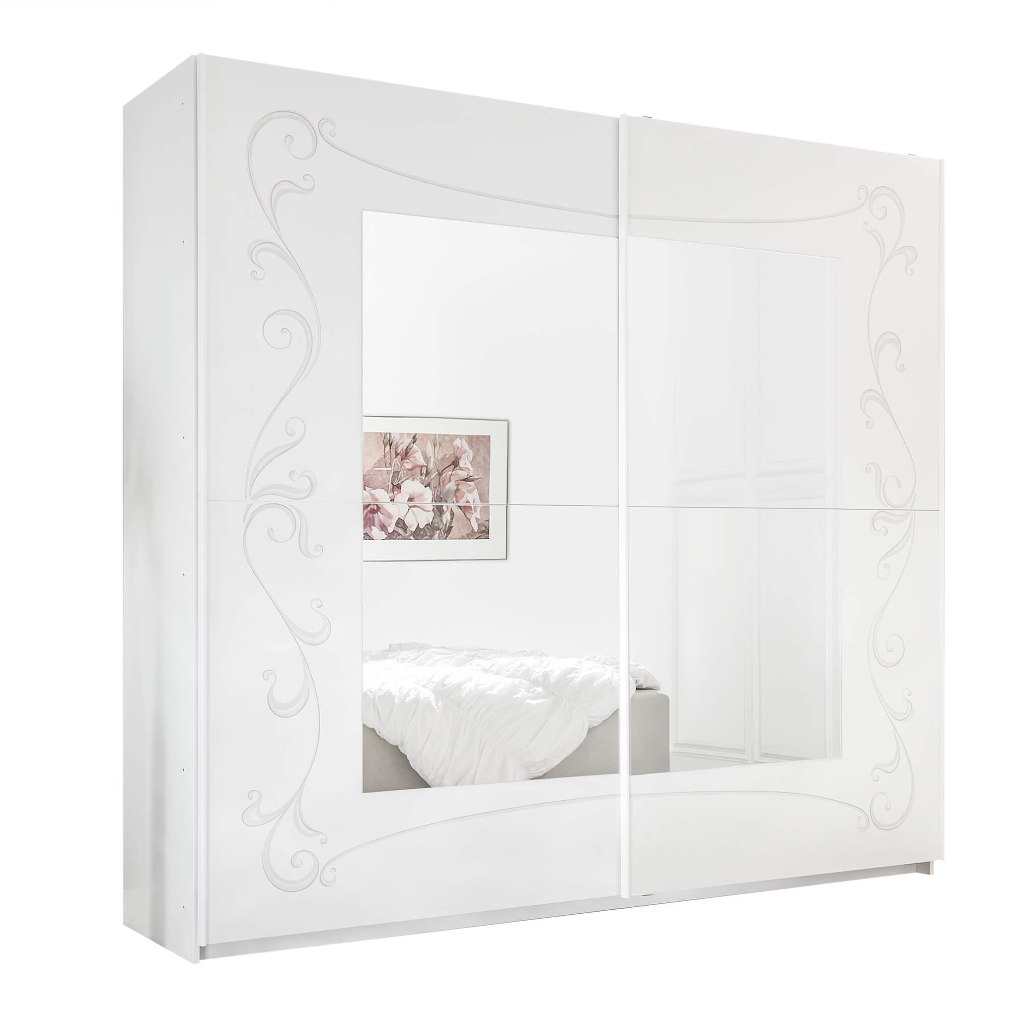 L'armadio NELSON rappresenta l'apice dell'eleganza unita alla funzionalità. Progettato pensando alle esigenze delle abitazioni moderne, le sue ante scorrevoli sono la risposta ideale per gli ambienti in cui lo spazio è un bene prezioso. Ogni dettaglio dell'armadio NELSON è stato studiato con cura: i delicati motivi curvilinei arricchiscono le ante, conferendo un'aria di sofisticata leggerezza all'intera struttura.Il grande specchio centrale, oltre a fornire un'utilità pratica nelle attività quotidiane, amplifica visivamente l'area, rendendo la stanza più luminosa e ariosa. Questa caratteristica, combinata con il design pulito e l'eleganza dei dettagli, rende NELSON un complemento d'arredo versatile, in grado di adattarsi sia a camere da letto dal design moderno che a quelle dal sapore più classico.L'armadio NELSON non è solo un luogo dove conservare abiti e accessori, ma un vero e proprio elemento d'arredo che eleva lo stile della stanza. La sua presenza trasforma qualsiasi spazio in un ambiente raffinato e ben organizzato, dove funzionalità ed estetica convivono in perfetta armonia. Se stai cercando un armadio che combinazione funzione e forma in maniera impeccabile, NELSON è la scelta giusta per te.