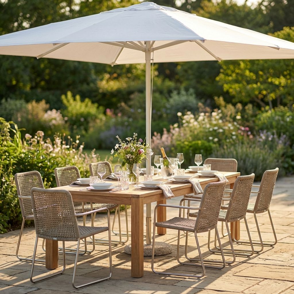 Ombreggia e decora il tuo spazio esterno con il nostro ombrellone con palo centrale, disponibile con telo beige, bianco o taupe o grigio. Unisce durabilità, design e praticità per la massima comodità sotto il sole.