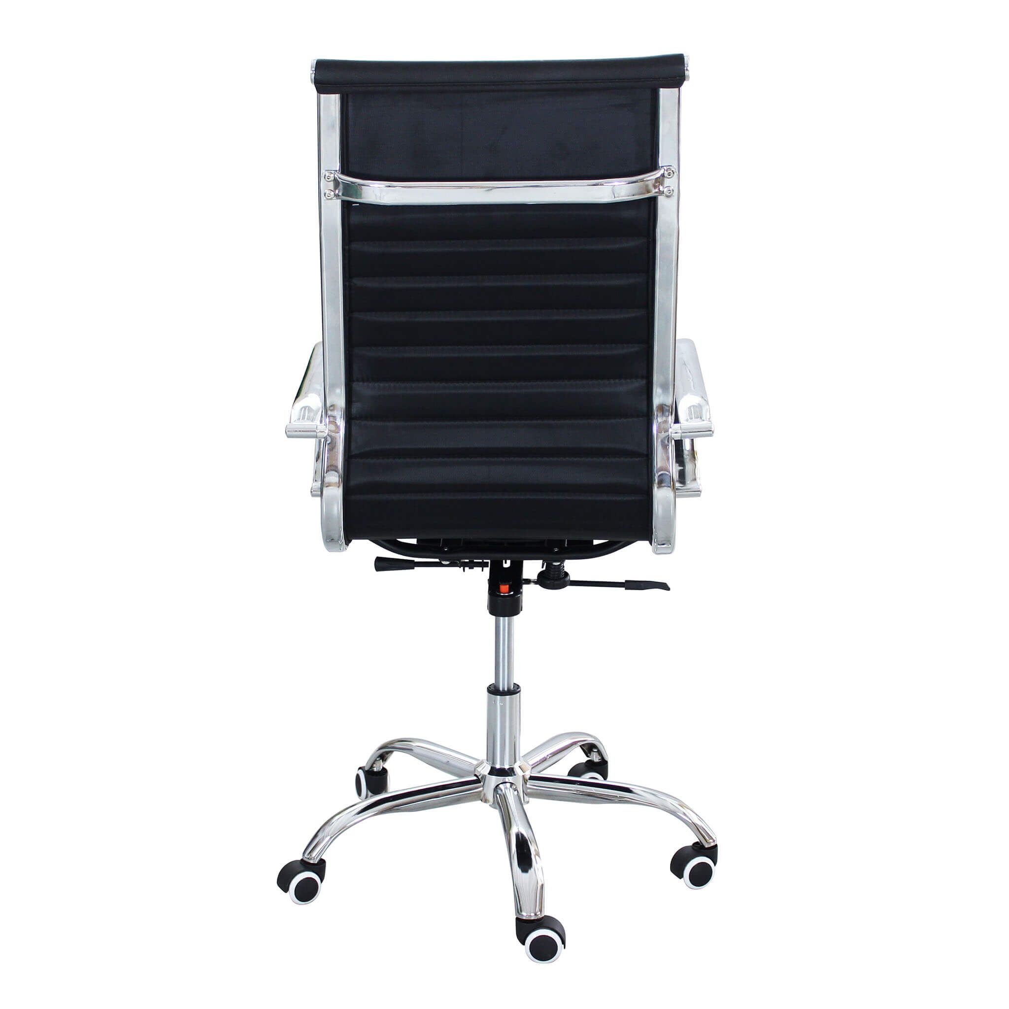 NIKITA è una sedia adatta per ufficio, elegante ed ergonomica. Rivestita in pelle ecologica nera, conferisce professionalità all'ambiente lavorativo. La sua struttura cromata con base a stella offre stabilità ed è regolabile in altezza. Perfetta per uffici dirigenziali o sale riunioni.