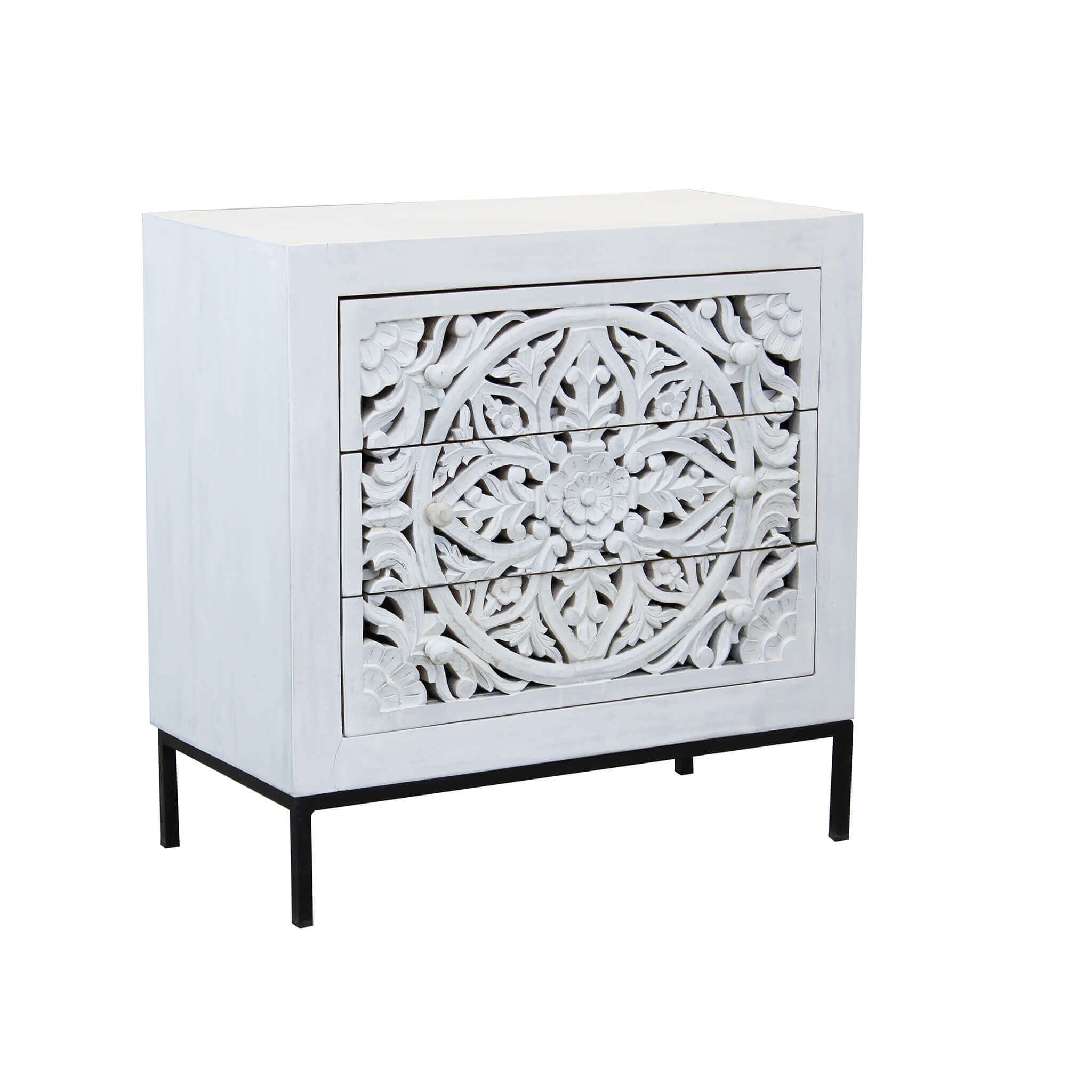Come un forte richiamo alle origini e un chiaro riferimento alla cultura orientale, OHM rappresenta il meglio per poter decorare la tua casa con uno stile esotico e naturale. Il suo legno di mango laccato in bianco opato dona un forte senso di pace, purezza, mentre i suoi intarsi nel legno denotano una grande sofisticazione nella lavorazione, un capolavoro di stile etnico. OHM presenta poi una struttura in metallo che lo rende particolarmente robusto e duraturo nel tempo. Il legno di mango di cui è composto è un materiale ecosostenibile e tra il più utilizzato nelle culture orientali per arredamento da interno.