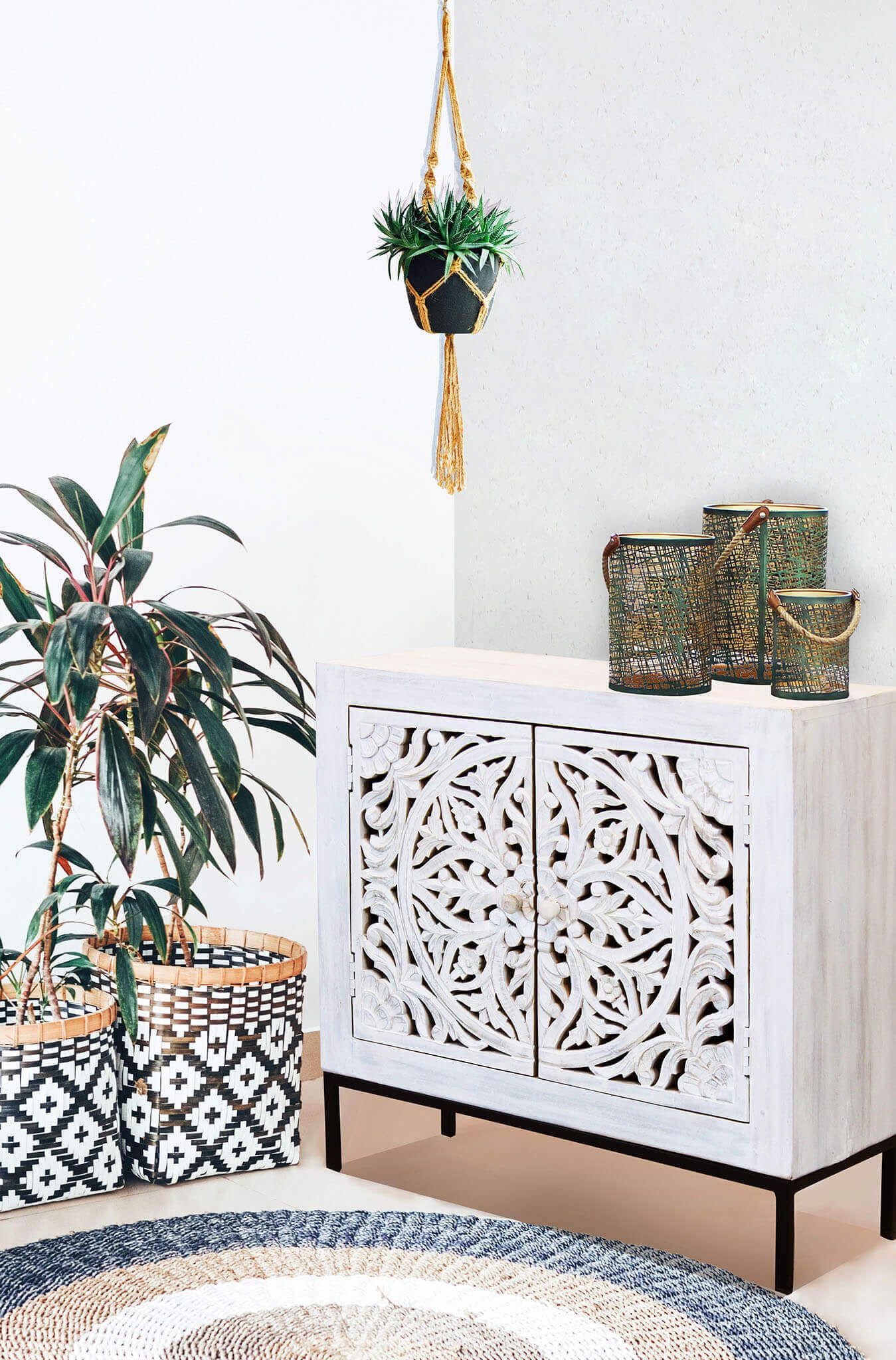 OHM è un'esplosione di cultura e tradizione orientale per la tua casa. Il suo legno di mango laccato in bianco opaco evoca una sensazione di pace e purezza, mentre gli intarsi nel legno aggiungono un tocco di raffinatezza. Questo capolavoro di stile etnico è costruito con una struttura in metallo resistente, garantendo una durata nel tempo. Inoltre, il legno di mango utilizzato è ecologico, rendendo OHM una scelta sostenibile per il tuo arredamento. Abbraccia le tue radici e immergiti in un'atmosfera esotica con OHM.