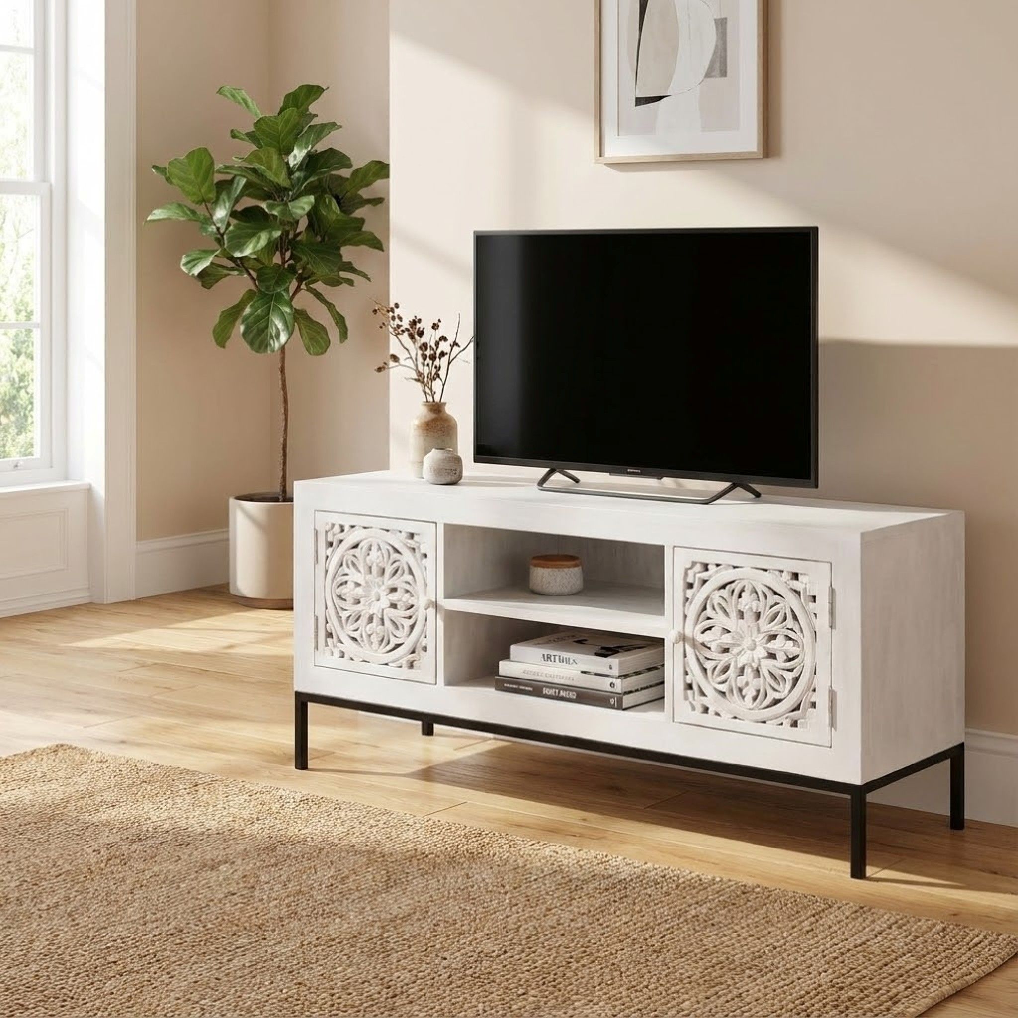 Porta il tuo spazio TV al livello successivo con OHM, un mobile dal look senza tempo che si adatta perfettamente al tuo arredamento. Con il suo design tropicale, ti mette a tuo agio e ti fa sentire a casa. Con le sue decorazioni in legno di mango e la sua struttura resistente, ti regalerà tranquillità e un senso di spazio in qualsiasi stanza.