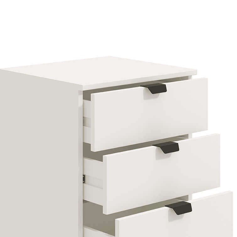La cassettiera moderna ONE è disponibile in due colori: bianco e rovere chiaro.