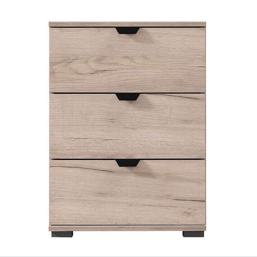 La cassettiera moderna ONE è disponibile in tre colori: bianco, rovere chiaro e rovere grigio.