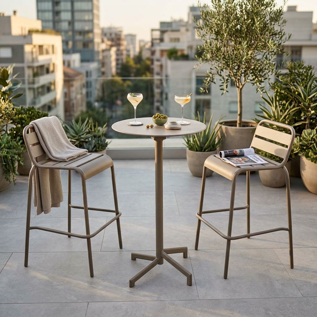 Il set da giardino OPERA è disponibile in colore bianco, tortora e taupe puoi scegliere di acquistarlo in forma quadrata o rotonda